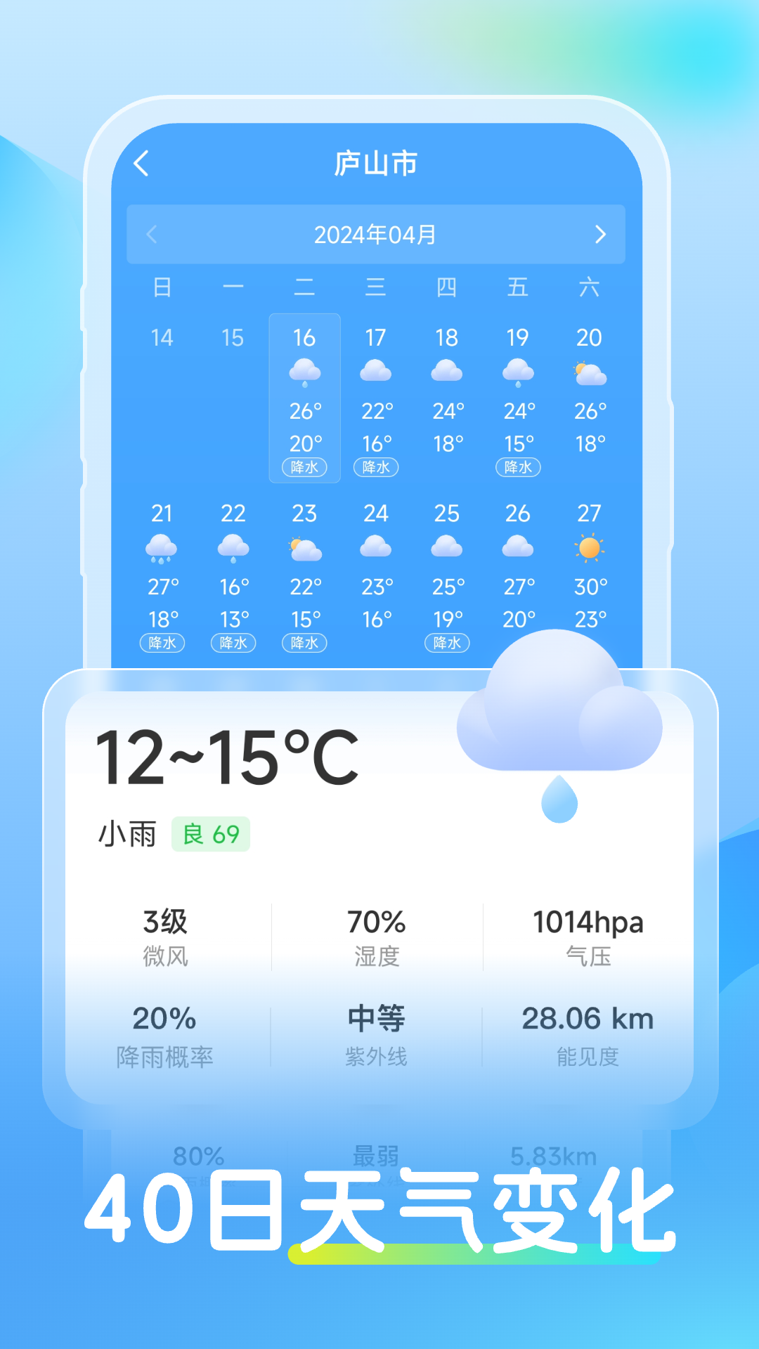 1】天气状况:无论是实时,还是未来24小时甚至40日的天气情况,我们都能为您提供全面、放心的服务。