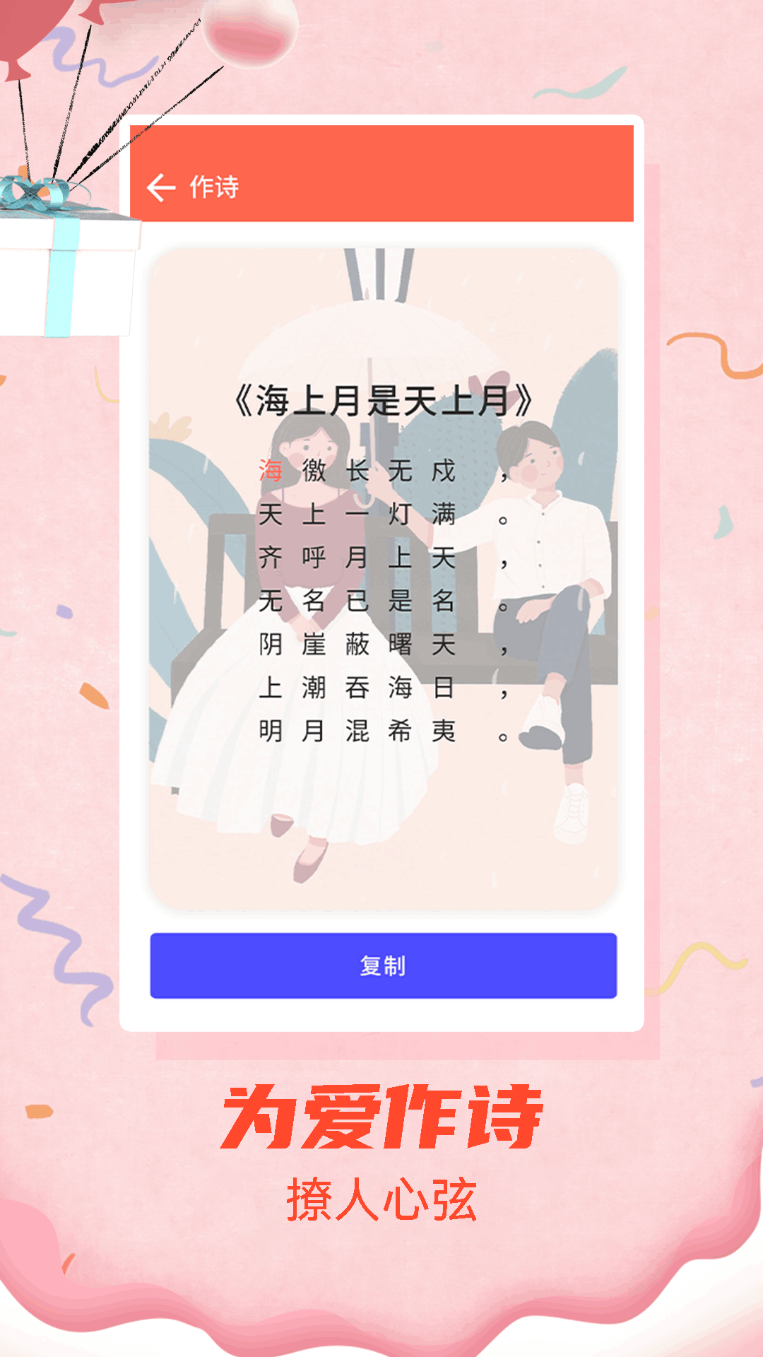 5.其他小功能,聊天表情包、情侣头像、表白古诗、与TA的情感运势。