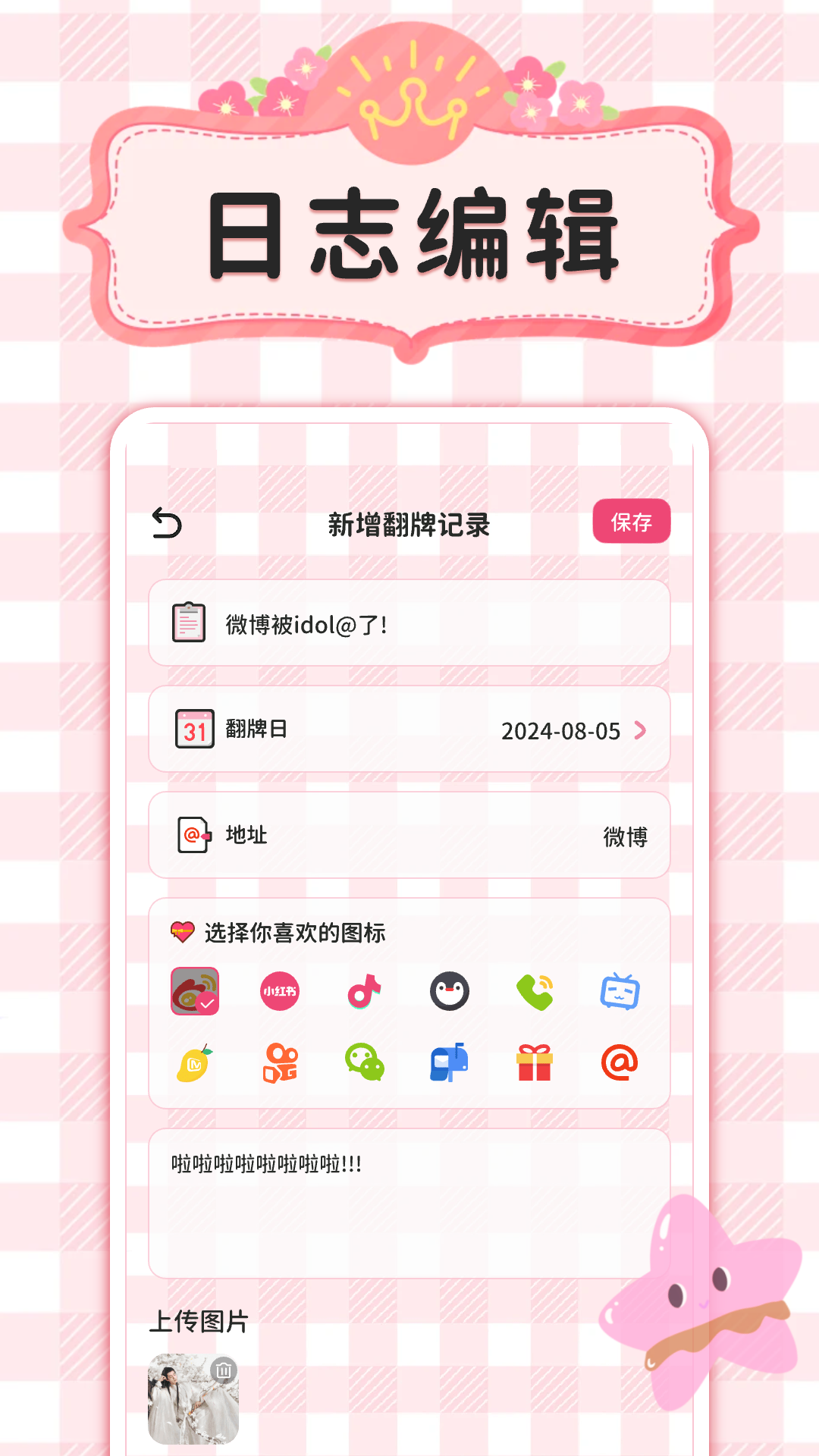 每日打卡,记录您与偶像共同度过的每一天。纪念日特别提醒,不错过任何与偶像相关的重要日子。