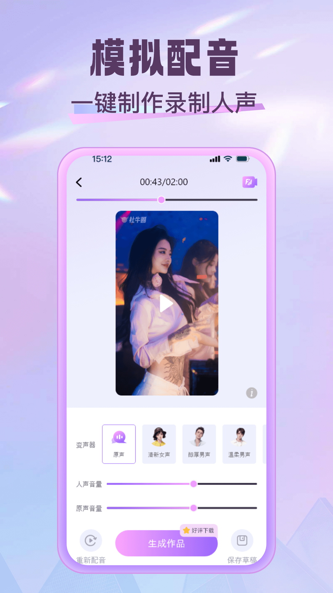 操作简单-选中想要的配音的视频,录制你的声音即可