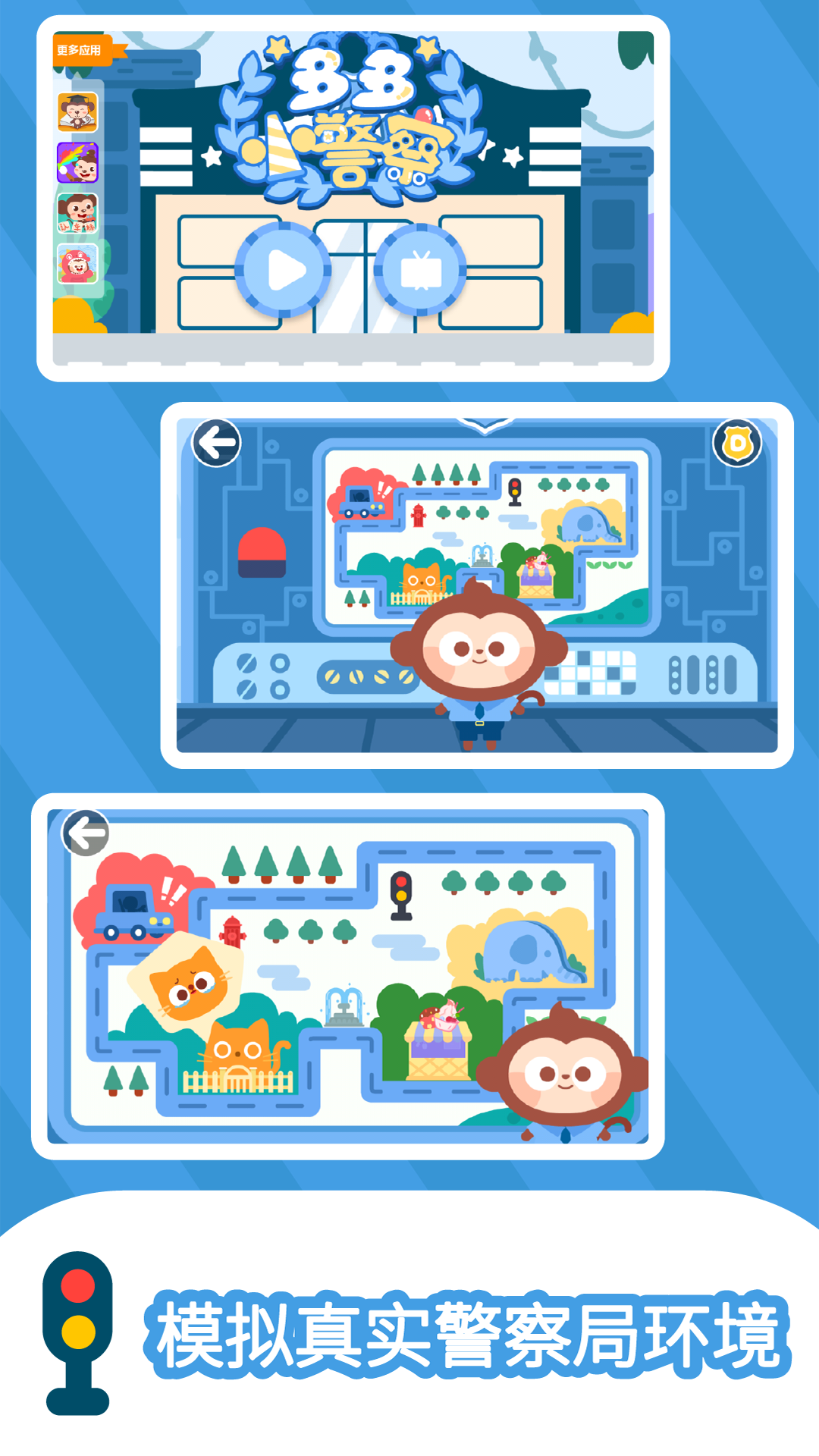 警局里有好多小动物来求助啦!小朋友,你想不想变成帅气又勇敢的小警察,根据线索解开谜团,追查案件的真相呢?想不想用自己的智慧和勇敢去帮助那些有困难的人呀?如果想的话,那就快来下载安装【多多小警察】吧!这个游戏好玩又能让小朋友增长知识,很科学呢,小朋友们,快开动自己的小脑筋,寻找线索去破案吧!它可是深受小朋友们喜爱的游戏呢。