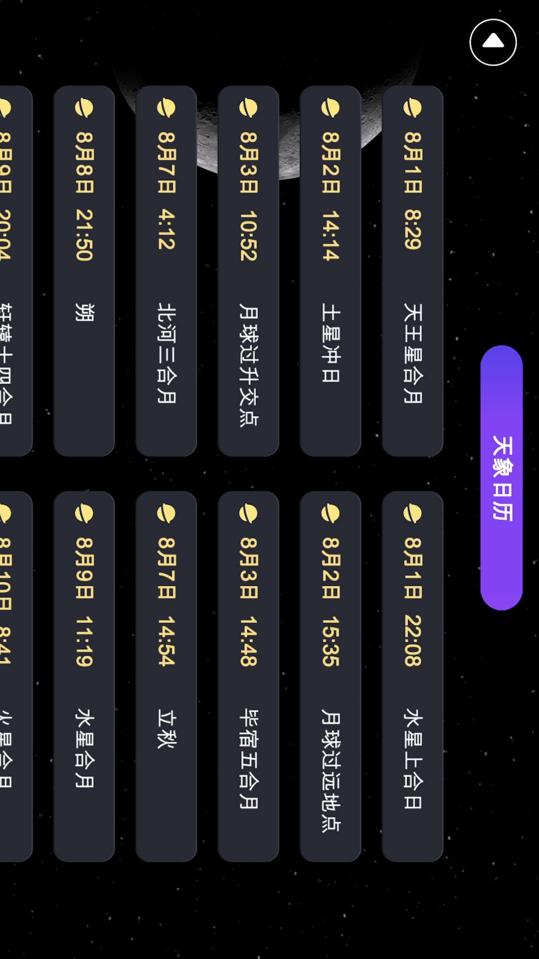 此应用支持查看月相、月初月落时间以及月龄等,而且不受观测地点和天气的影响。用户还能切换日期来获取不同时间点的月亮信息。