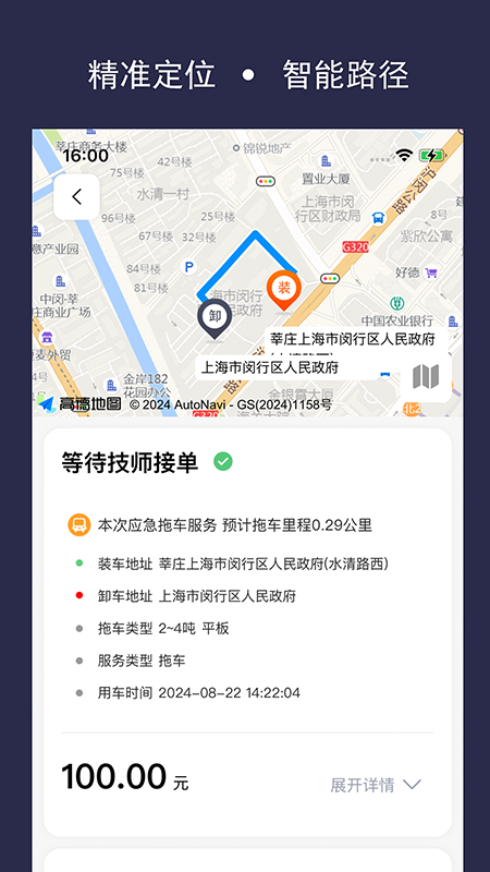 该平台服务车型十分齐全,平台上的技师具备专业能力,可以提供车辆换胎、车辆搭电、车辆故障及事故拖车、长短途整车运输等一系列服务,值得信赖。