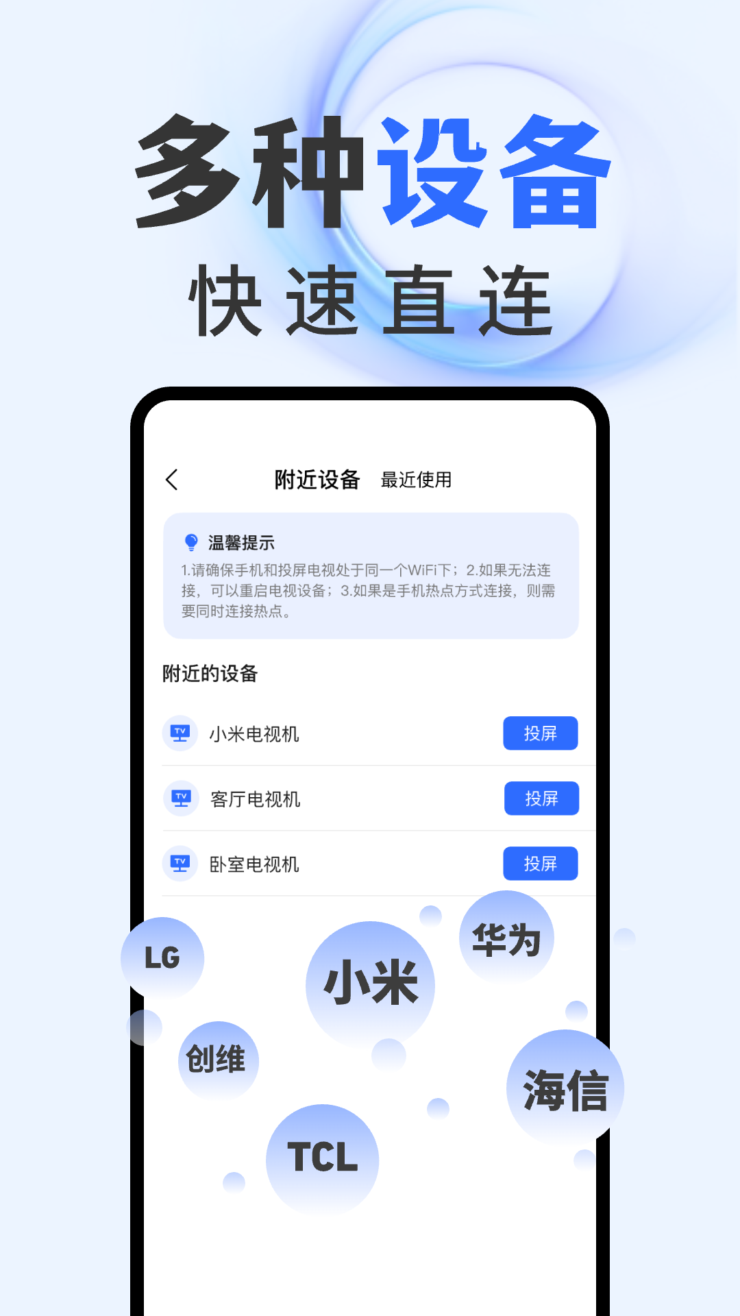智能电视投屏是一款专门为手机用户打造的投屏应用,它的目标是给用户带来流畅且便捷的屏幕共享体验。不管您是身处家中、办公室,亦或是在旅途中,仅仅需要简单的几个步骤,就能把手机屏幕上的内容投射到大屏幕上,从而获得更宽阔的视觉感受。