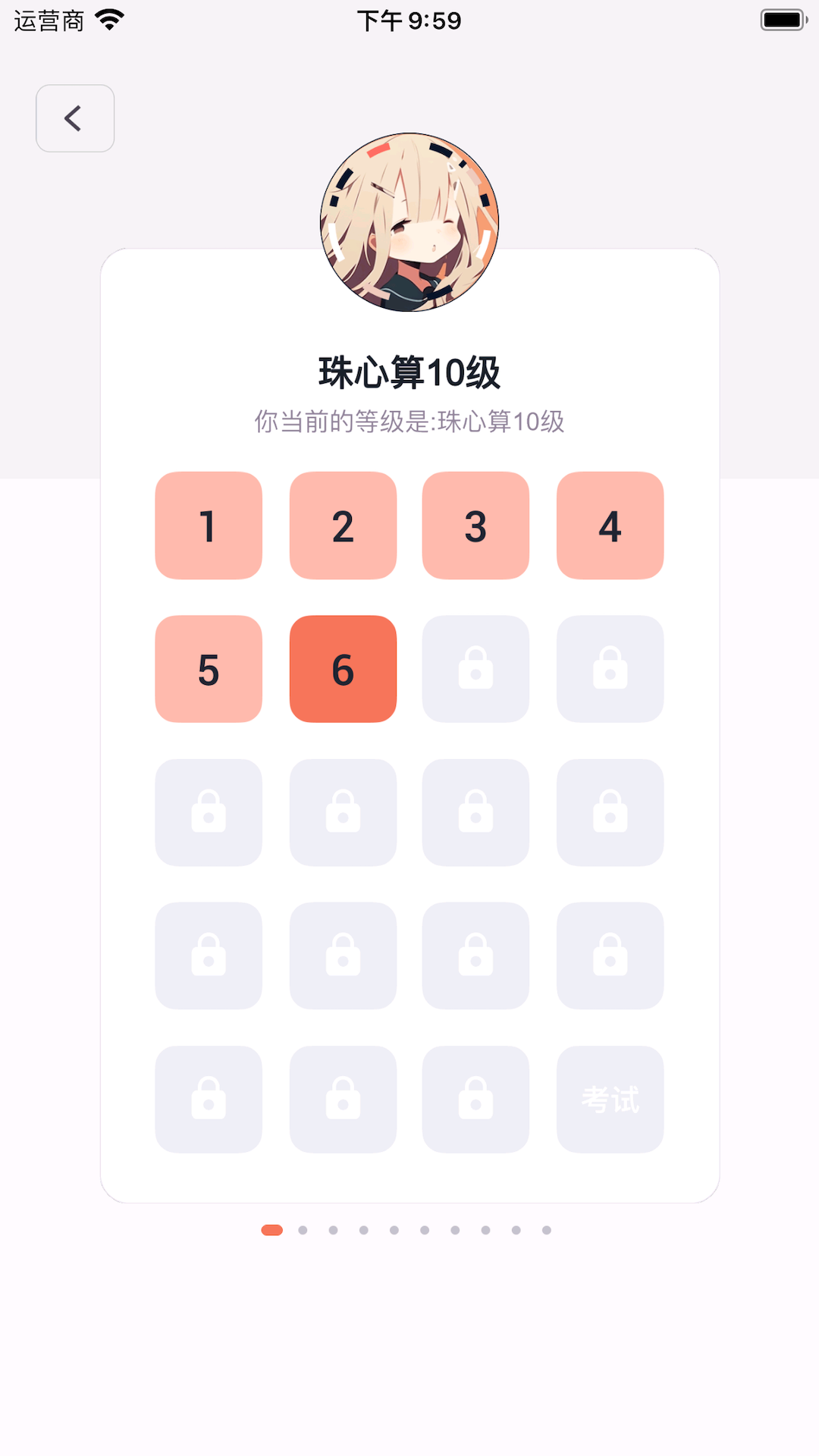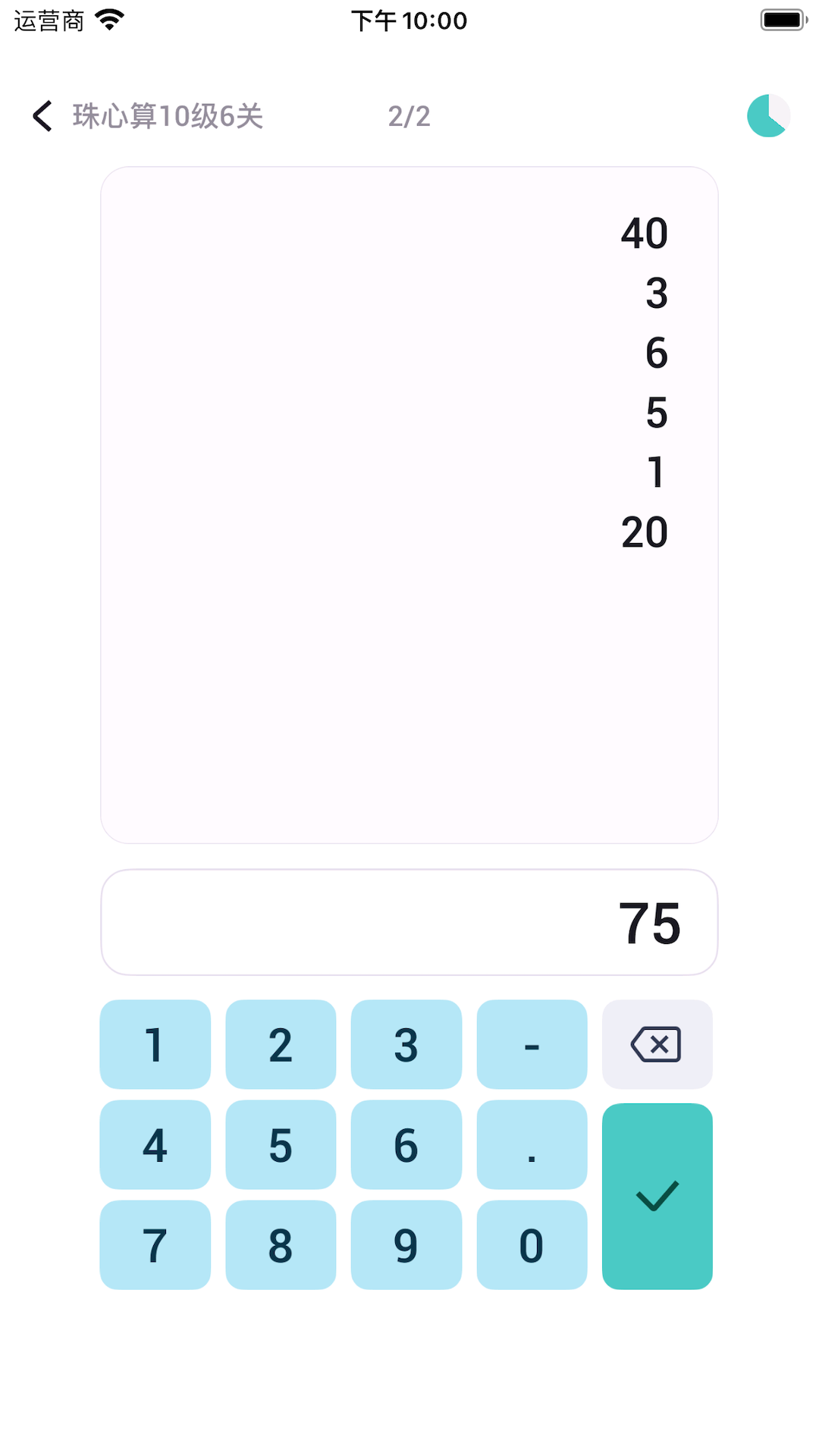 闯关模式划分为10个等级,共计200个小关卡,这些关卡分别与珠心算10级至1级的水平和能力鉴定标准相对应。各个小关卡的难度呈逐步递增态势,而每个大等级的考试关卡,都严格对标“珠算式心算鉴定标准”等级考试规范中的试卷题目。如此一来,考生和速算爱好者能够得到极为充分的珠心算训练,同时还能对自身的心算水平进行评估。珠心算5级水平与会计师资格考试中电算化证书的相应等级是对应的,相关人士可在此进行充分练习。