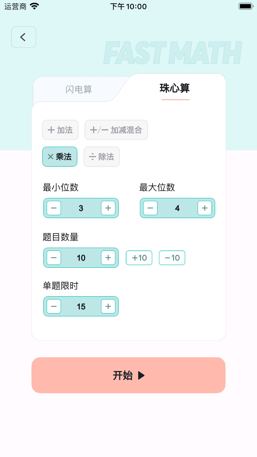“珠心算训练 - 心算、闪电算等级鉴定,速算训练神器”是一款依据《中国珠算心算珠算式心算鉴定标准》以及《世界珠算心算联合会珠心算等级鉴定标准》精心设计的专业应用。它具备等级专业、内容多样、操作简便、趣味教学的特性,是众多数学计算爱好者和闪算爱好者不可或缺的专业训练与考试利器。此应用包含闯关模式和自定义模式这两大模式。