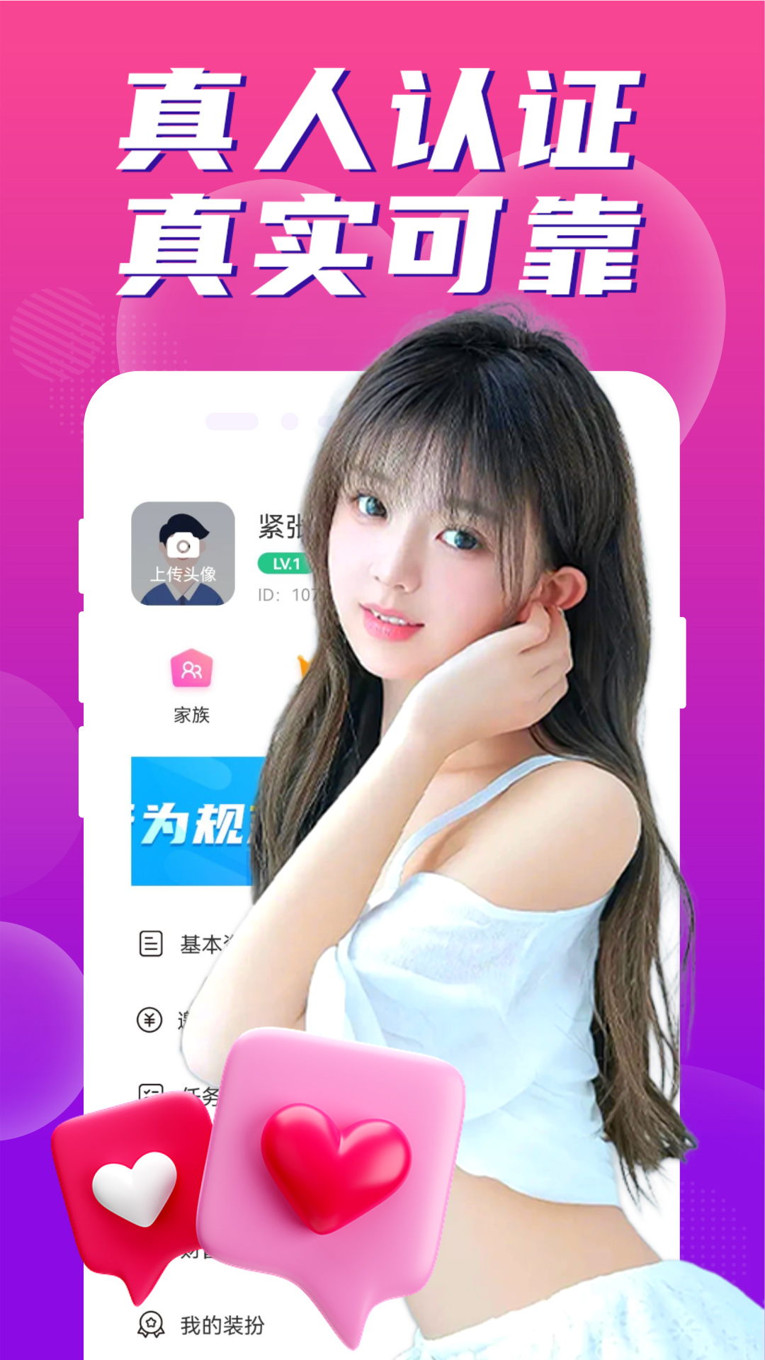 它拥有全新的社交匹配模式,具备丰富的恋爱社交功能,不但有语音、视频互动,还有聊天广场、家族群聊等互动模式。快来这里进行一场甜蜜的聊天交友之旅吧,快速找到适合自己的那个TA,爱上同城附近的夜约会,从此让生活不再孤单!