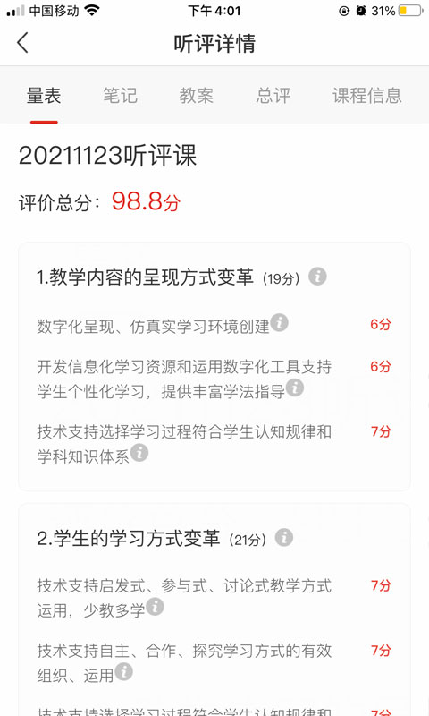 “听课评课”亦被称为“课堂观察”,这是教研活动中经常采用的方式。继教网所开发的“听评课工具”旨在构建科学的评课模型,它将网络、大数据以及移动设备进行整合,既便于进行数据记录,又能运用数据分析方法,从而让听评课活动在信息化的环境里突破时空的局限,得以更加高效、便捷地开展。