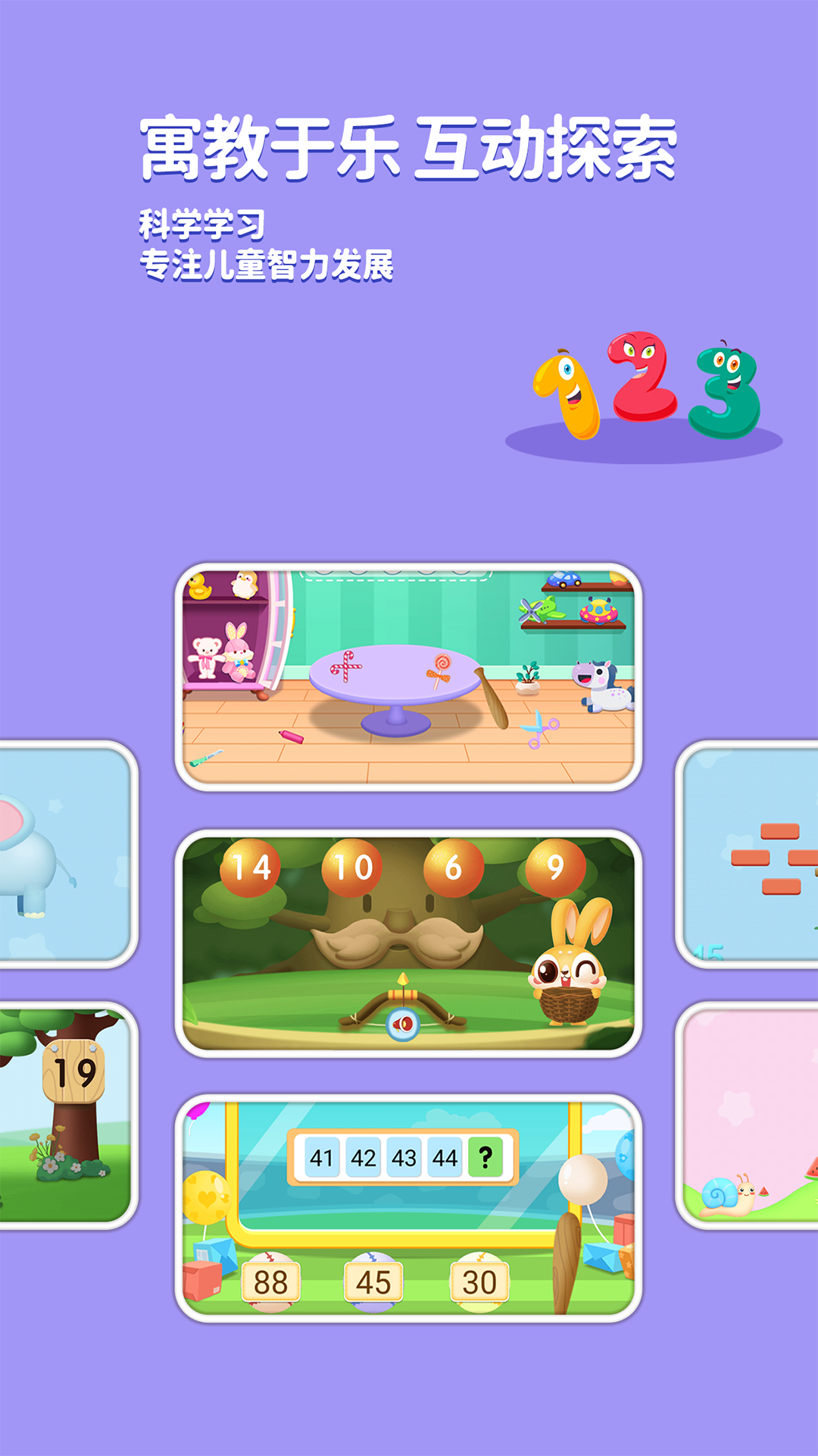 这款产品包含宝宝学数字123的教育游戏。在这个游戏里,每个数字都被赋予了独特的故事,这让游戏内容丰富多彩,极大地激发了孩子们的兴趣。它涵盖基本的数字描红、数学知识和计数内容,可以正确地教会孩子辨别数字、计数、书写数字以及数字的发音。而且,学习过程简单又极具吸引力。