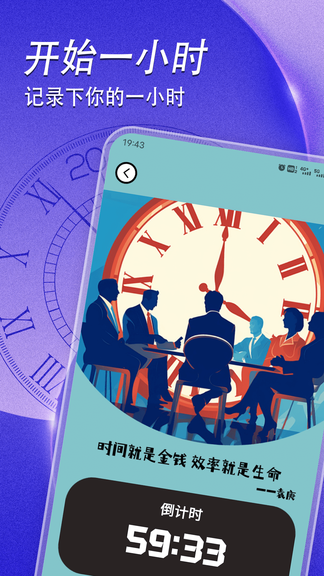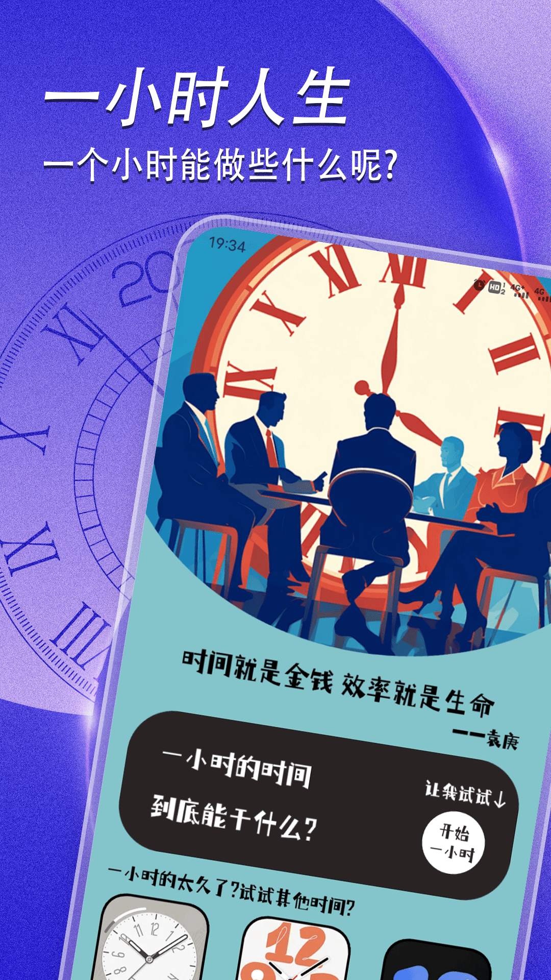 你有没有想过,一小时能用来做什么呢?在《一小时人生》里,它给予你一个小时的时长,让你去尽可能多地做一些充满意义的事情哦。你能够在这一个小时的时间内,去规划那些自己想要达成的事情呢。这么有趣又独特的体验,还等什么呢?赶快下载来试试吧!