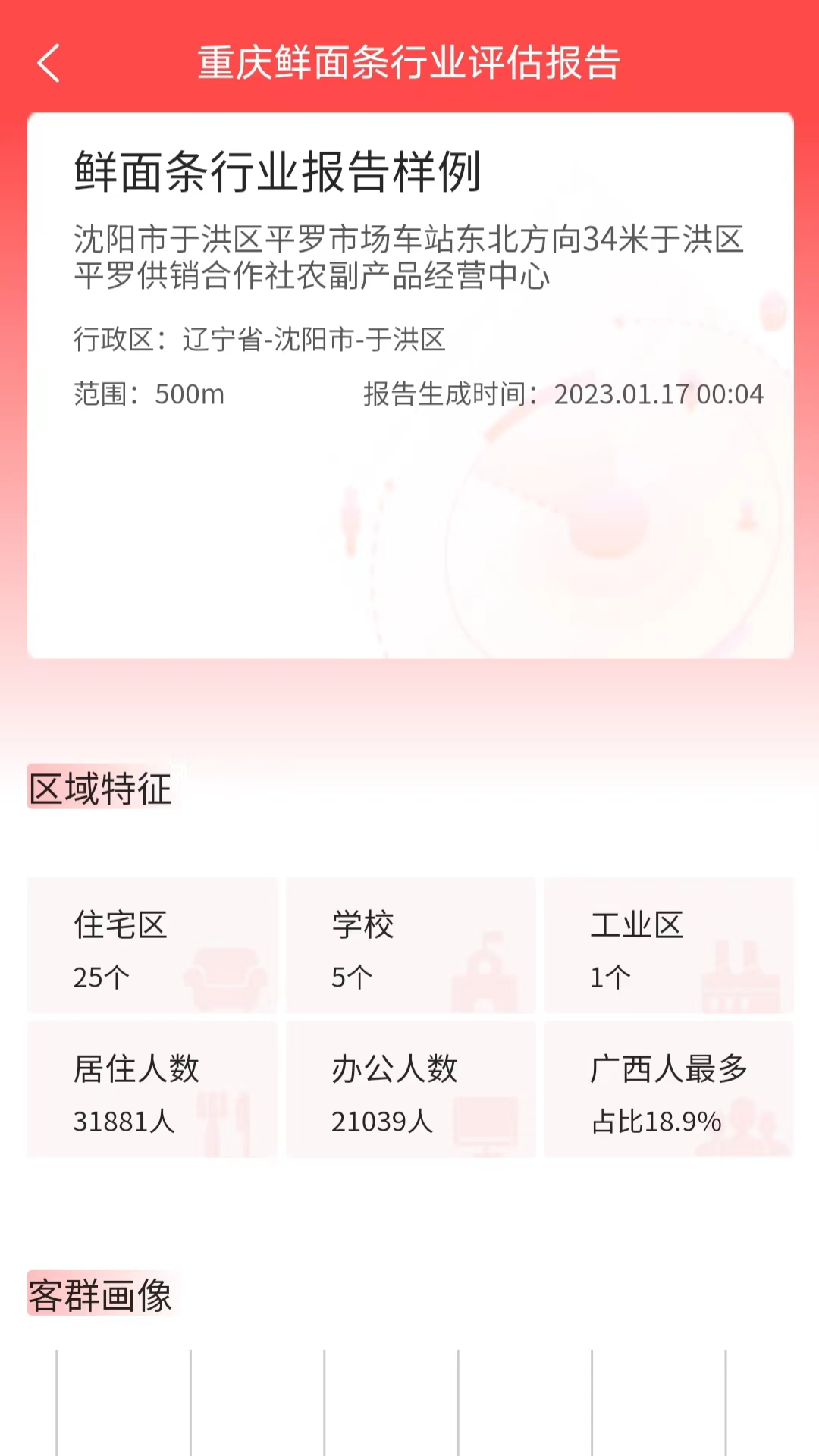 为鲜面条行业从行者提供全国范围内菜市场周围2公里范围内的人群数量查询和客群特征分析;面坊交易信息分享;鲜面条行业资讯等服务