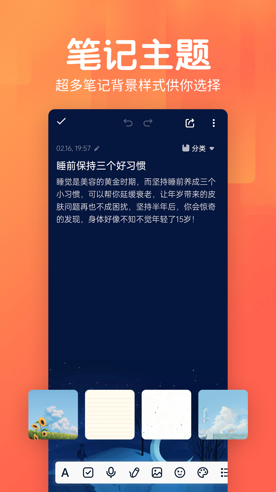 您可以使用它来记手帐、写备忘录、记事、安排待办事项、设置备忘提醒,还能用于写日记、罗列购物清单、记录读书笔记、留下便签,哪怕是脑海中的奇思妙想、生活中的感悟或者有趣的段子,都可以随手记录下来。
