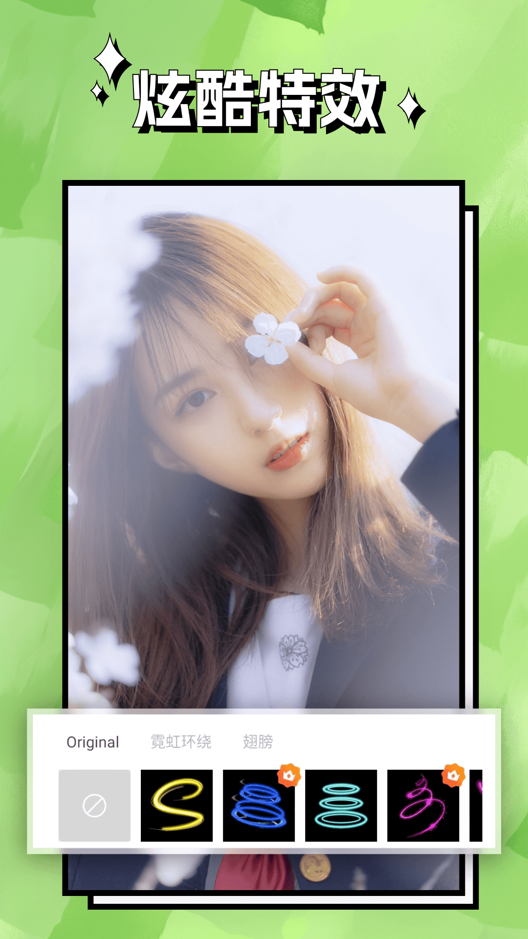 特效奇力,创意迸发。特效虽属于贴纸的一种,但更为丰富多样。清风相机的特效功能能够让您添加各种各样绚丽的效果,为照片注入更多创意的灵感火花。从星光闪烁,到魔幻氛围,使您的照片变得别具一格。