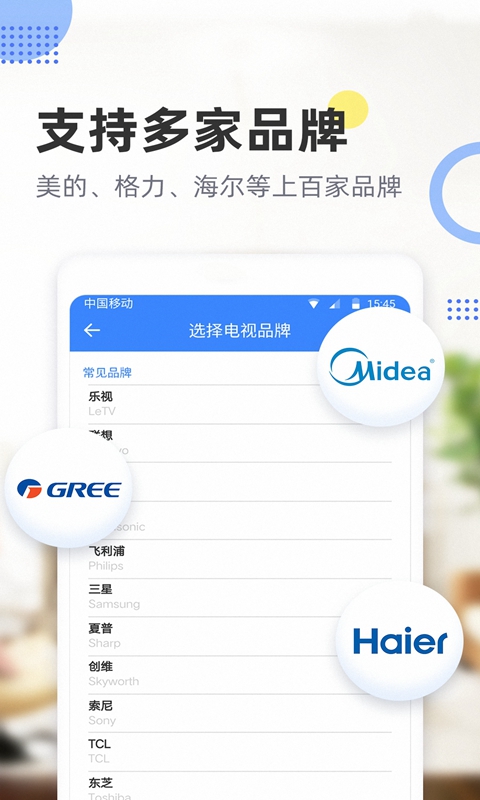 这个遥控器APP能够匹配当前市场上大部分的智能手机型号以及家居设备型号呢。它涵盖了多达数百款的电视遥控和空调遥控等类型。