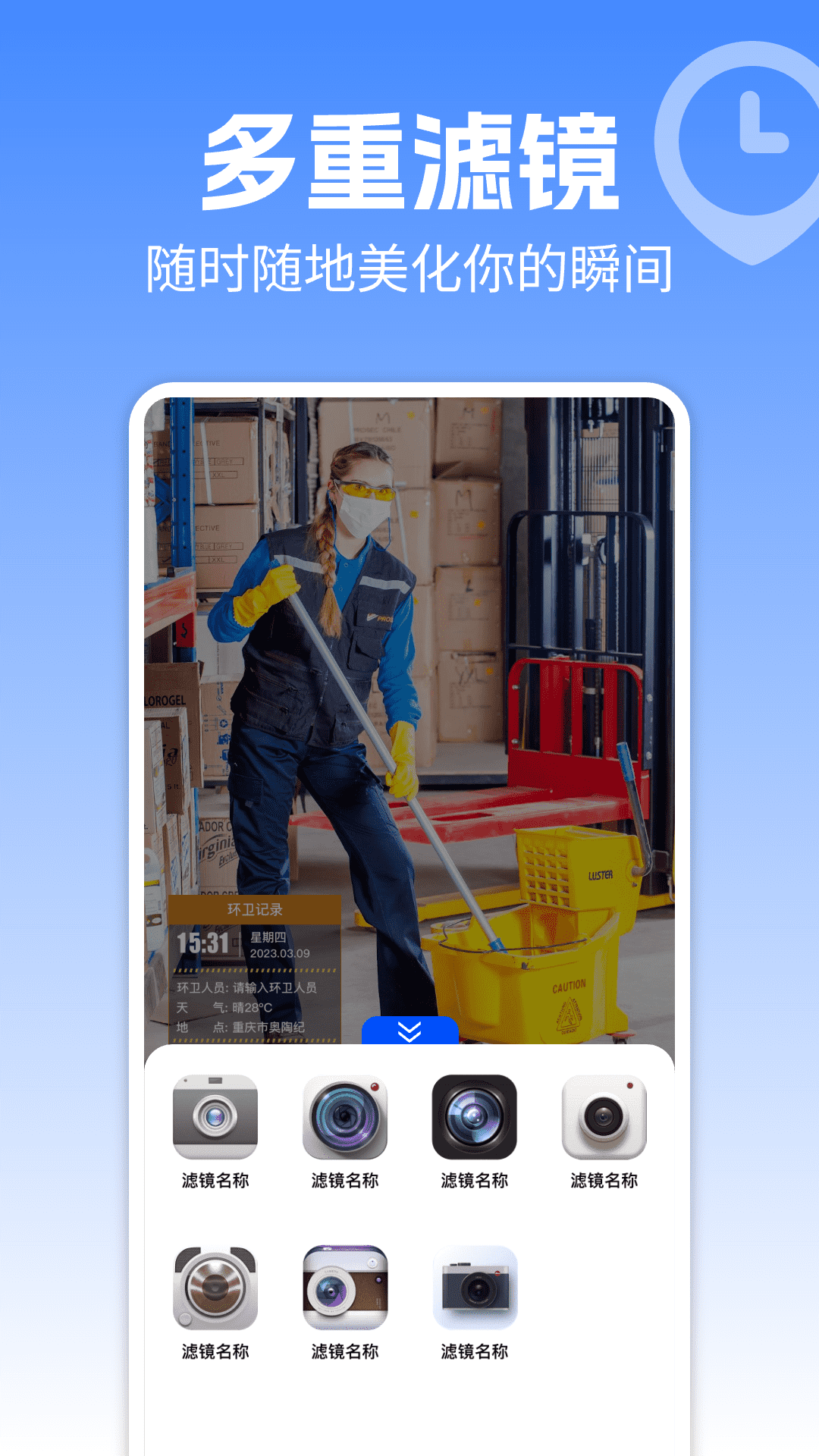 水印相机定位拍照打卡是一款人工智能高清工作水印拍照产品,水印自带真实时间地点,产品简单好用,并提升个人工作及企业管理效率。