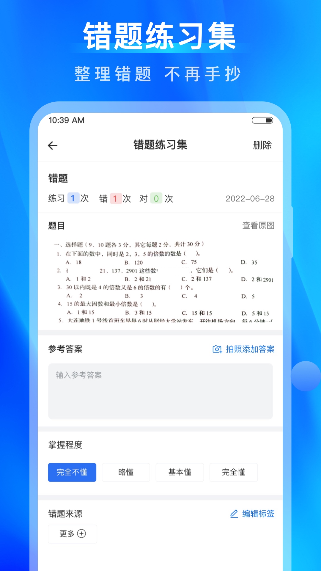 能够快速地整理错题,按照标签分类归拢在一起,还可以标注知识点。