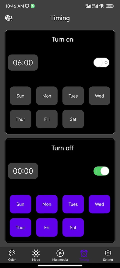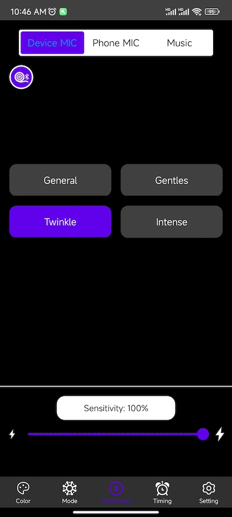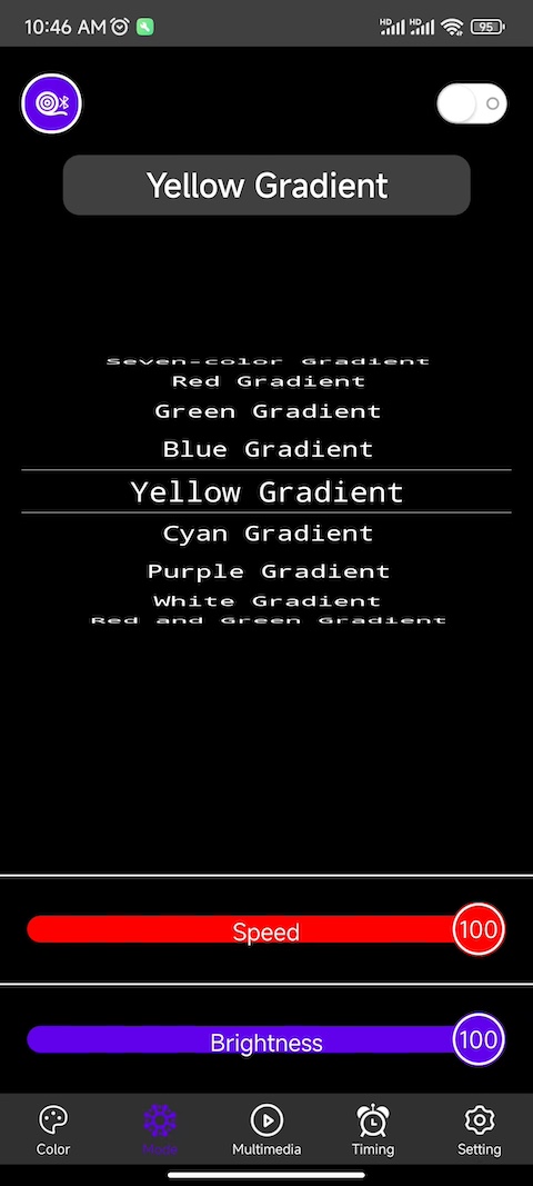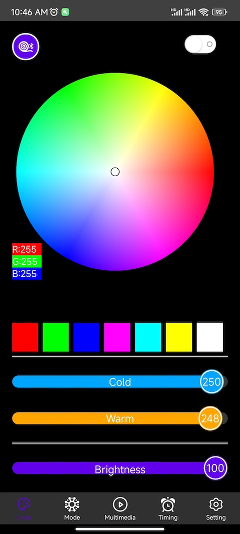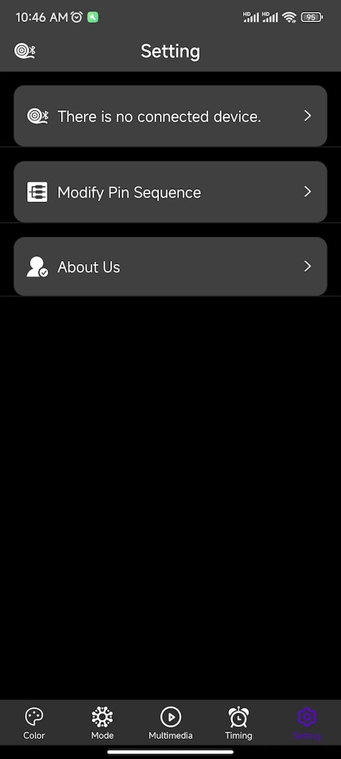 ZN - Light这个应用,主要是用来控制智能蓝牙灯具设备的。通过它,用户能够对智能蓝牙灯具进行多方面的操控,像调整灯具的颜色、亮度,控制灯具的开关,切换灯具的模式等。除此之外,该应用还具备麦克风控制模式以及手机音乐控制模式。