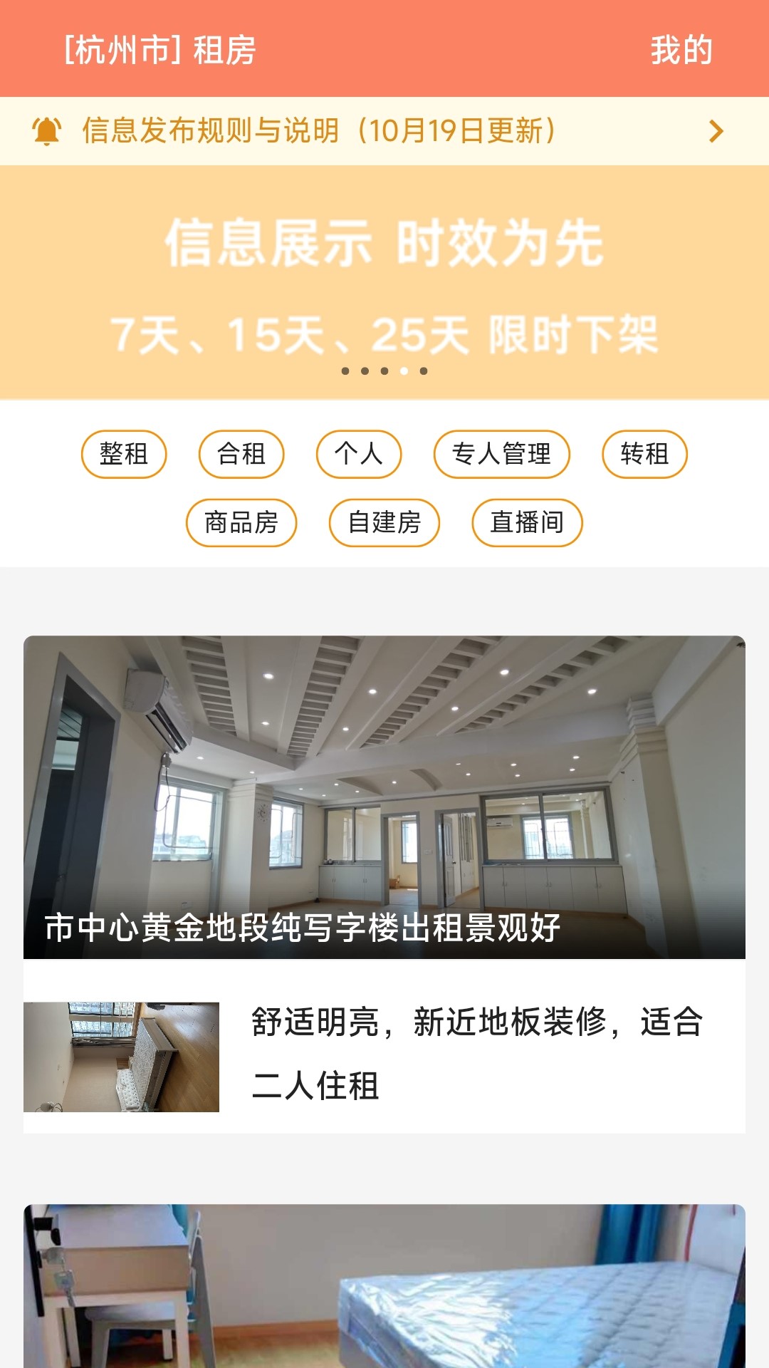 时效信息展示: 我们认为每一秒都宝贵,因此我们的房源信息都经过人工审核,确保完整准确。更重要的是,所有房源信息只在限定期限内展示,过期自动下架,避免“僵尸信息”长期霸屏,节约您宝贵的时间。