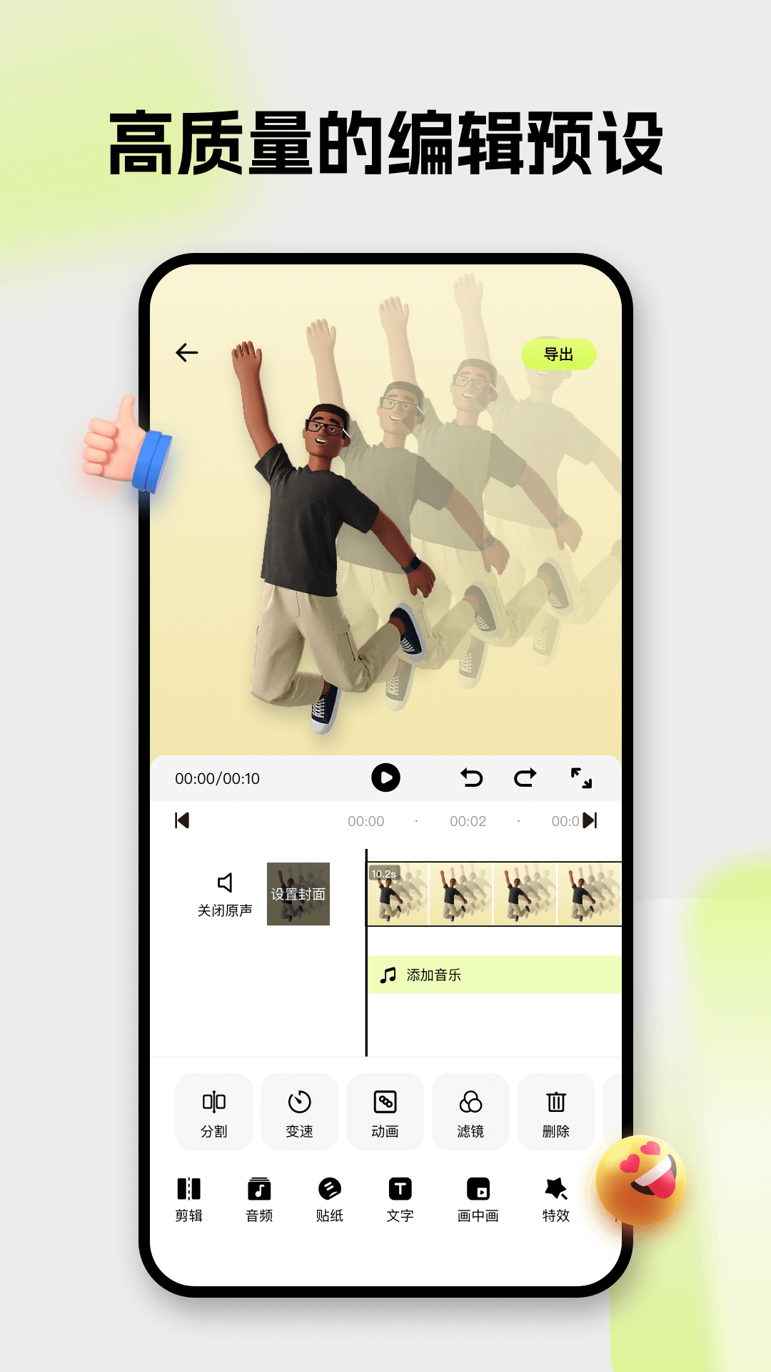 - 「变速」:无论是快速还是慢速变速,都能轻松打造出富有仪式感的变速视频。