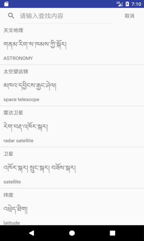 《汉藏英辞典》app,是一款功能丰富的图解词典应用,目前包含了4554个词语,3000多张图片,每个词语除了图片和汉、藏、英三种文字外,还提供了汉语、英语、藏语牧区音、藏语拉萨音和藏语康巴音的读音,是学习这三种语言的好工具。本应用可以分别用汉文、藏文、英文三种文字显示,以方便不同语言的使用者。