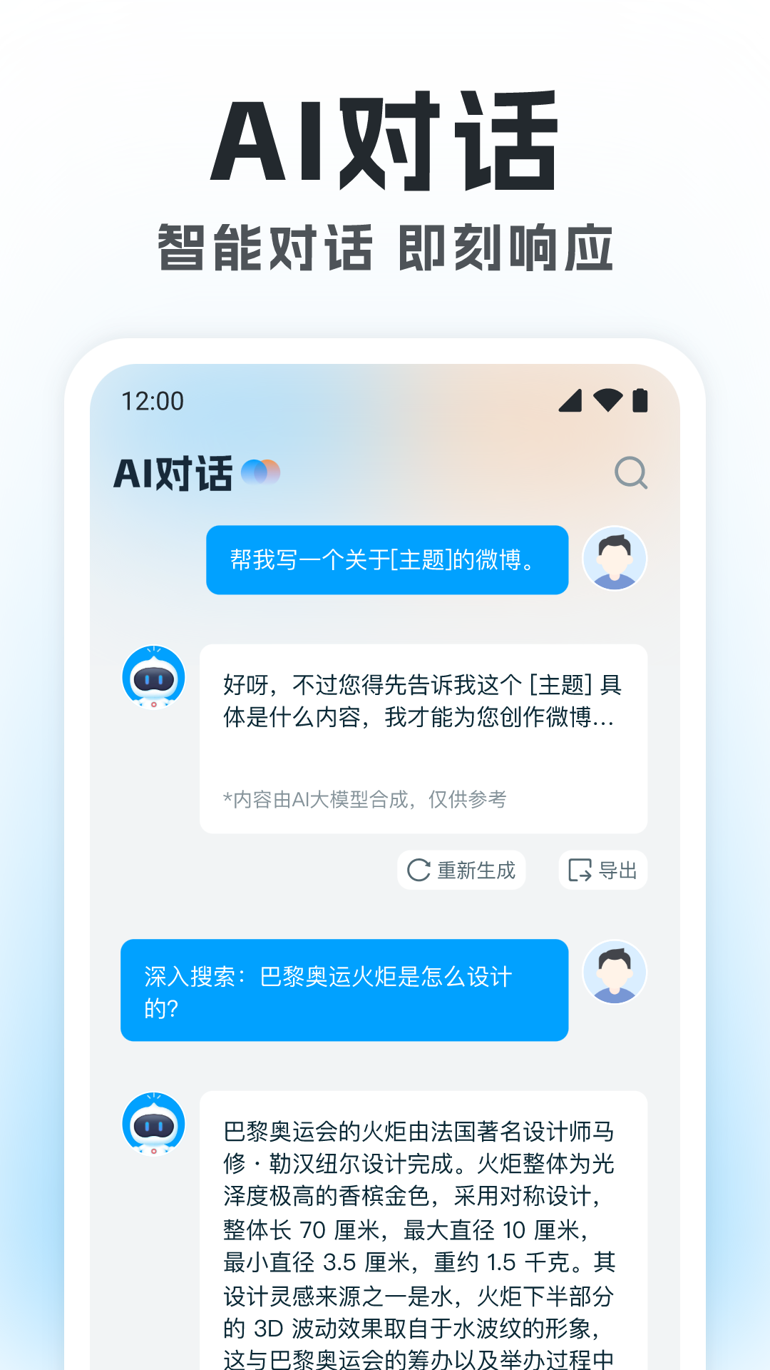 《AI帮写作》,是每一位创意工作者的得力助手,也是每位生活探索者的贴心伴侣。让我们一起,用AI的力量,开启无限可能的创作与探索之旅!立即下载,开启您的精彩创作生活!