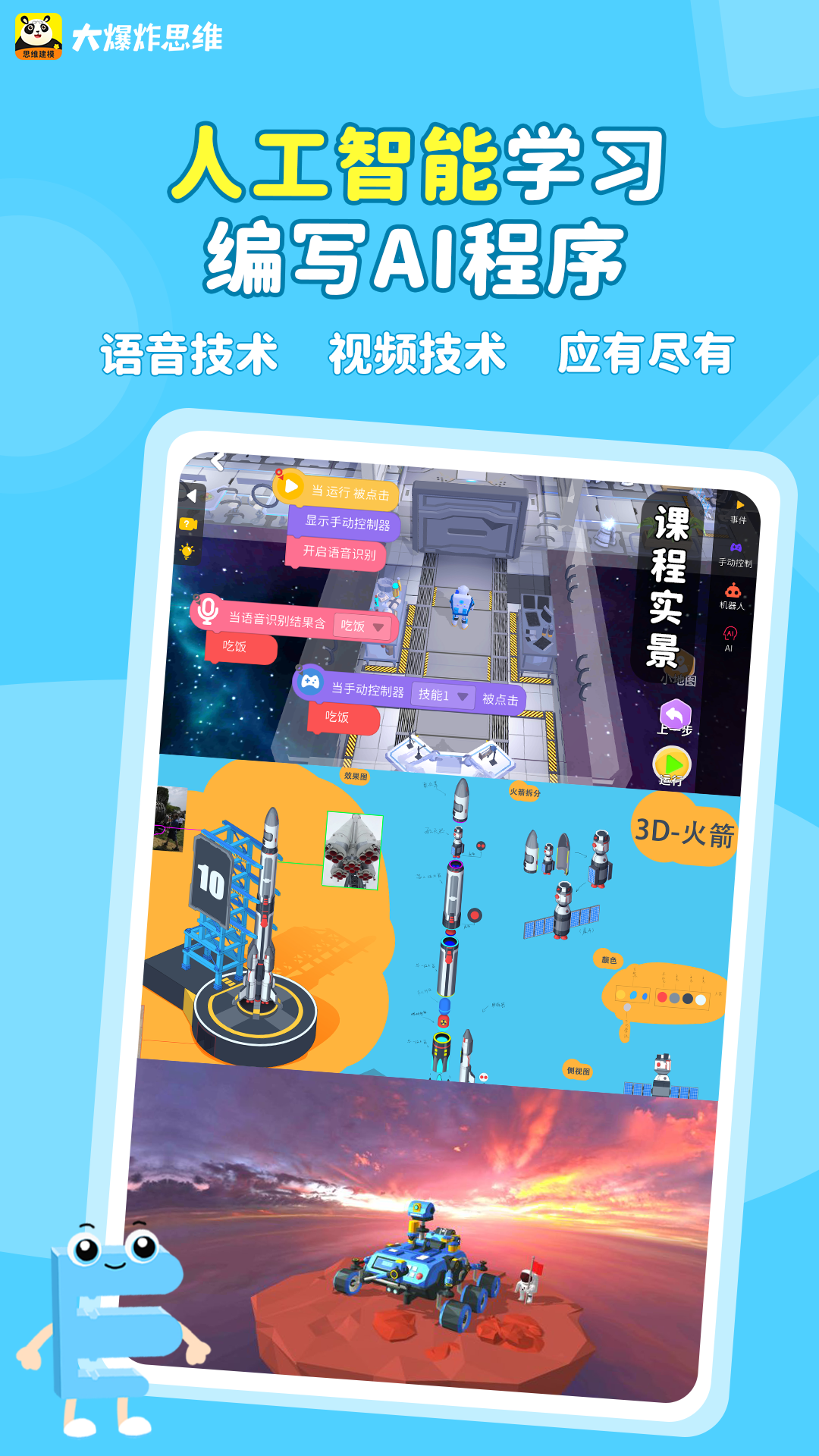 在编程工具方面,它拥有先进的3D版带物理引擎的图形化编程平台。在这个平台上,孩子们可以体验到火箭发射、核电站发电、空间站组装等充满趣味和科技感的操作,还能模拟在太空漫步、进行宇宙实验等,这极大地激发了孩子们对编程和科学探索的兴趣。