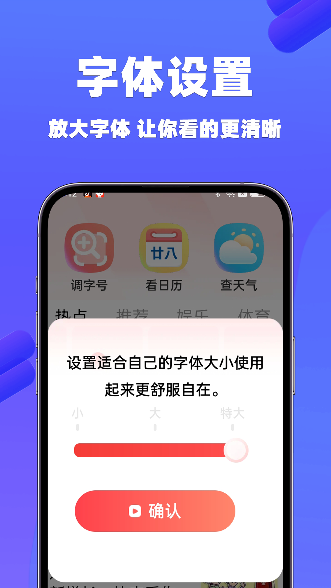 每天看大字版是一款综合资讯app,为广大用户提供各种类型的资讯内容,来每天看大字版,读天下奇闻趣事,更可调节超大字体,清晰不伤眼