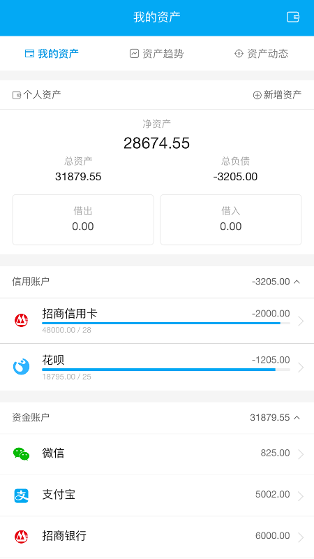 - 使您在最短时间内知晓近期的资产与收支状况。