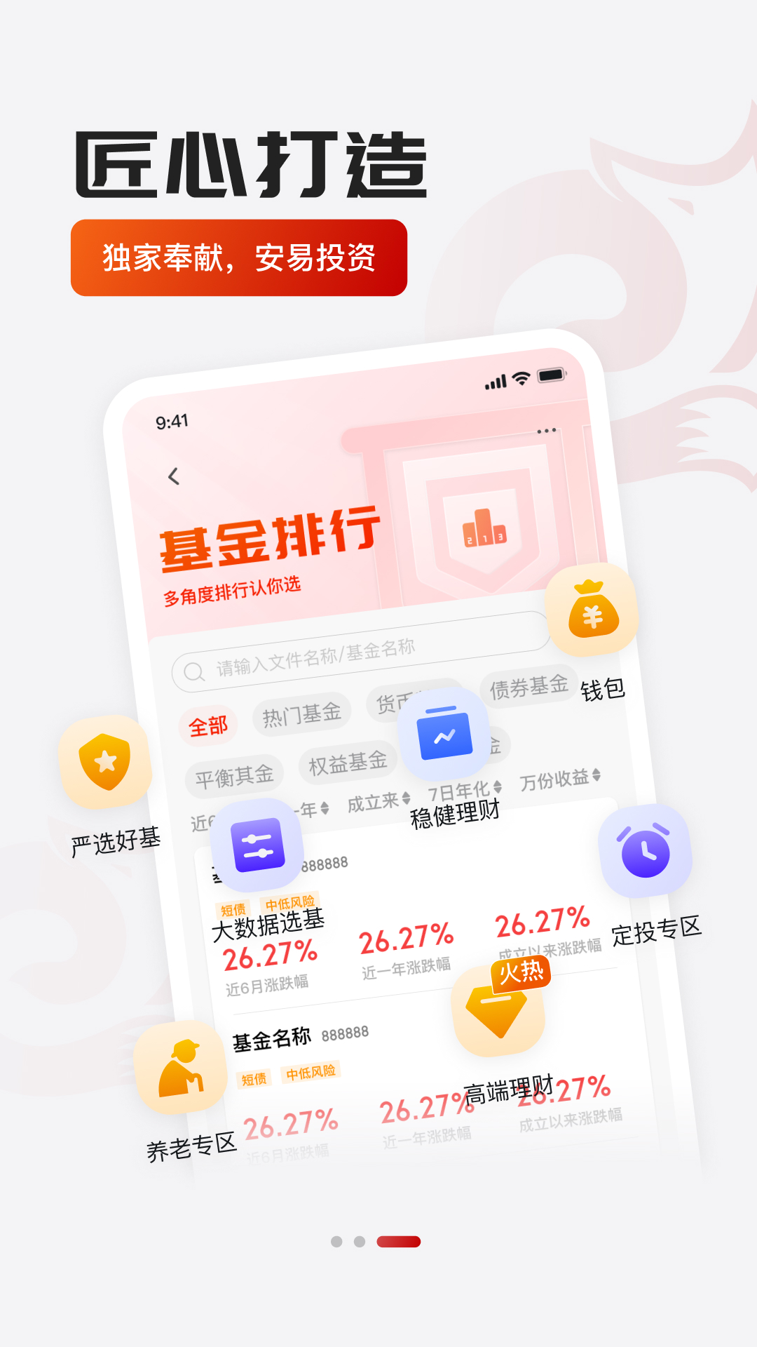 福克斯基金应用,帮助您选择出优秀的基金。助理您的资本收益。福克斯基金应用能帮助您在手机上快速精准的找到优质基金。有专业的基金组合,帮助您实现合理的基金配置。