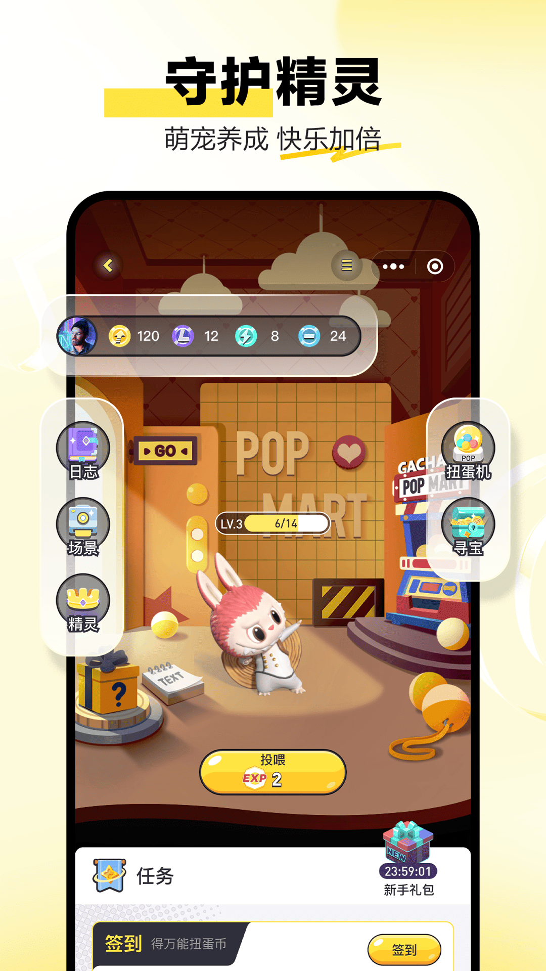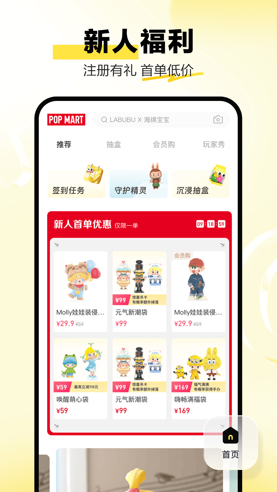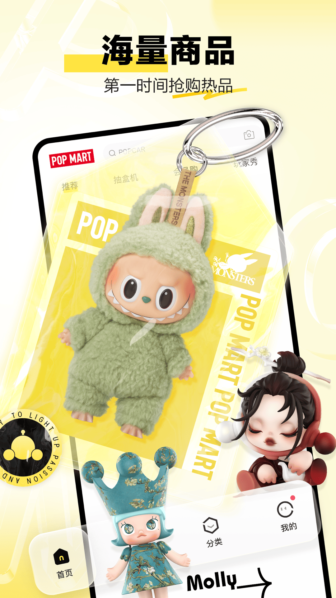 欢迎来到泡泡玛特!这是一款专门为潮流玩具爱好者打造的应用程序。我们的目标是将线下购买盲盒的完整流程体验原汁原味地搬到线上,使您在手机端就能感受到和实体店一样的购物乐趣。