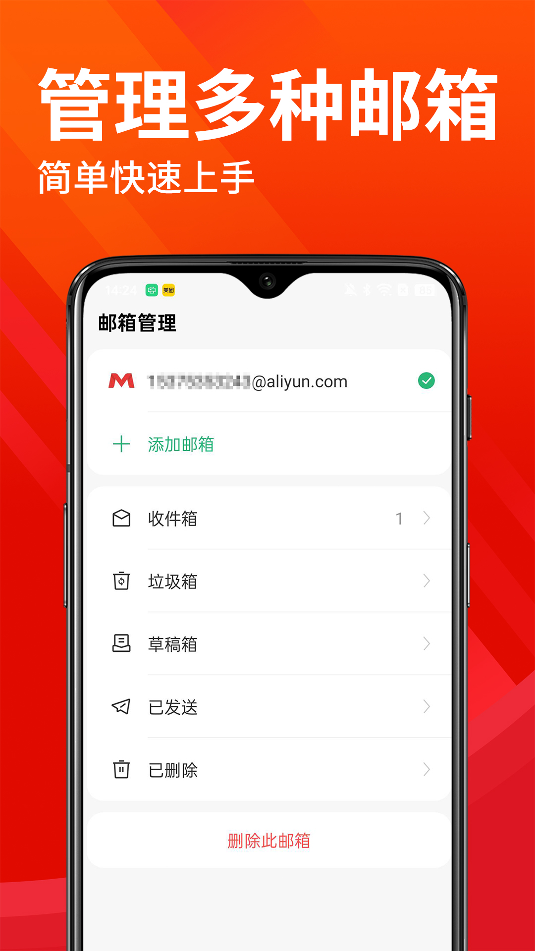 【邮件管理】全面支持QQ邮箱、阿里云邮箱和163邮箱,用户可以对邮件进行分类、标记、归档或删除。