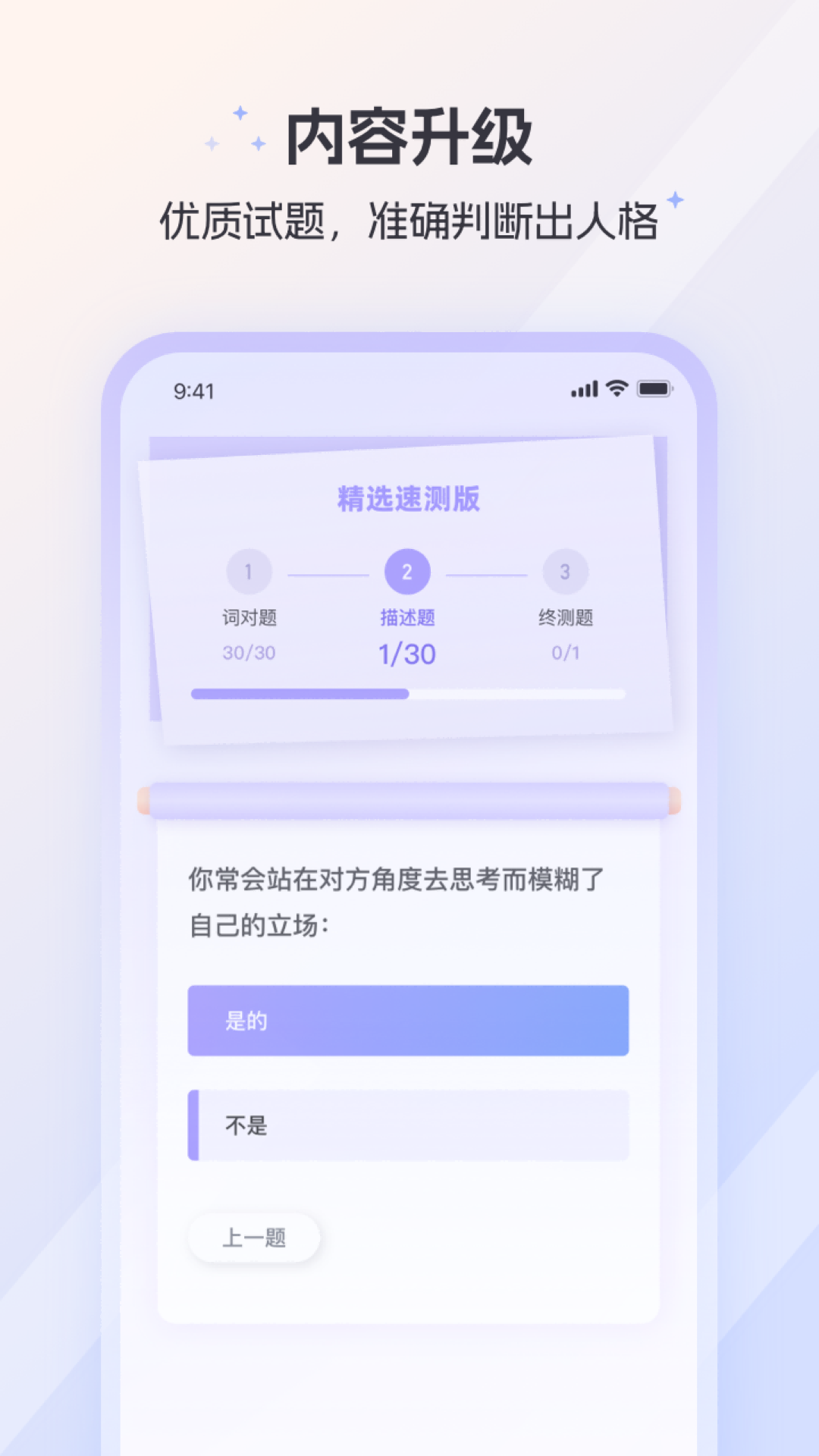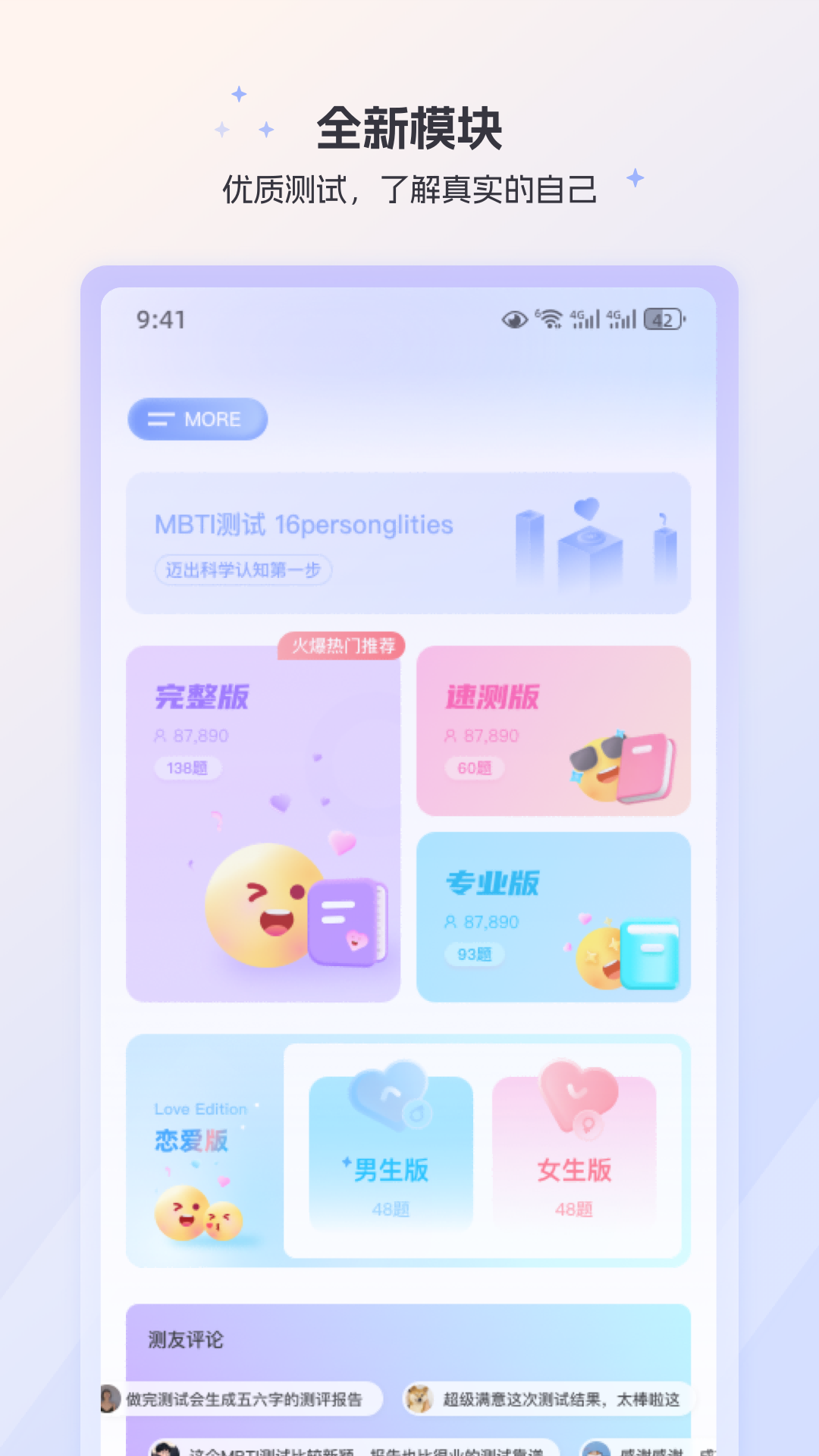 MBTI职业性格测试APP是一款专业的测试APP,它能精准地为您筛选出各类职业,并逐一详细介绍。该APP采用最新的霍兰德职业兴趣量表规则,为您构建出更合理的目标。