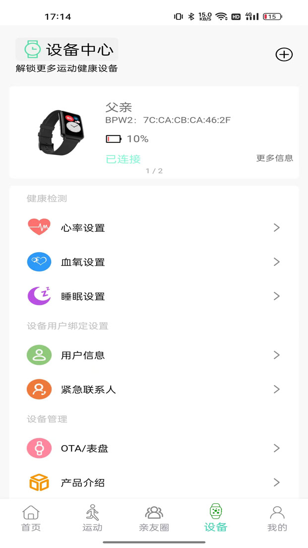 此外,纤动健康还能让您关注亲人的状况,及时接收来自亲人的消息通知,使您时刻了解家人的相关情况。在设备管理方面,它支持绑定多个手表,方便您对不同设备进行管理。而且,这里还设置了“我的信息”板块方便您查看和管理个人相关信息,以及“退出登录”功能等。
