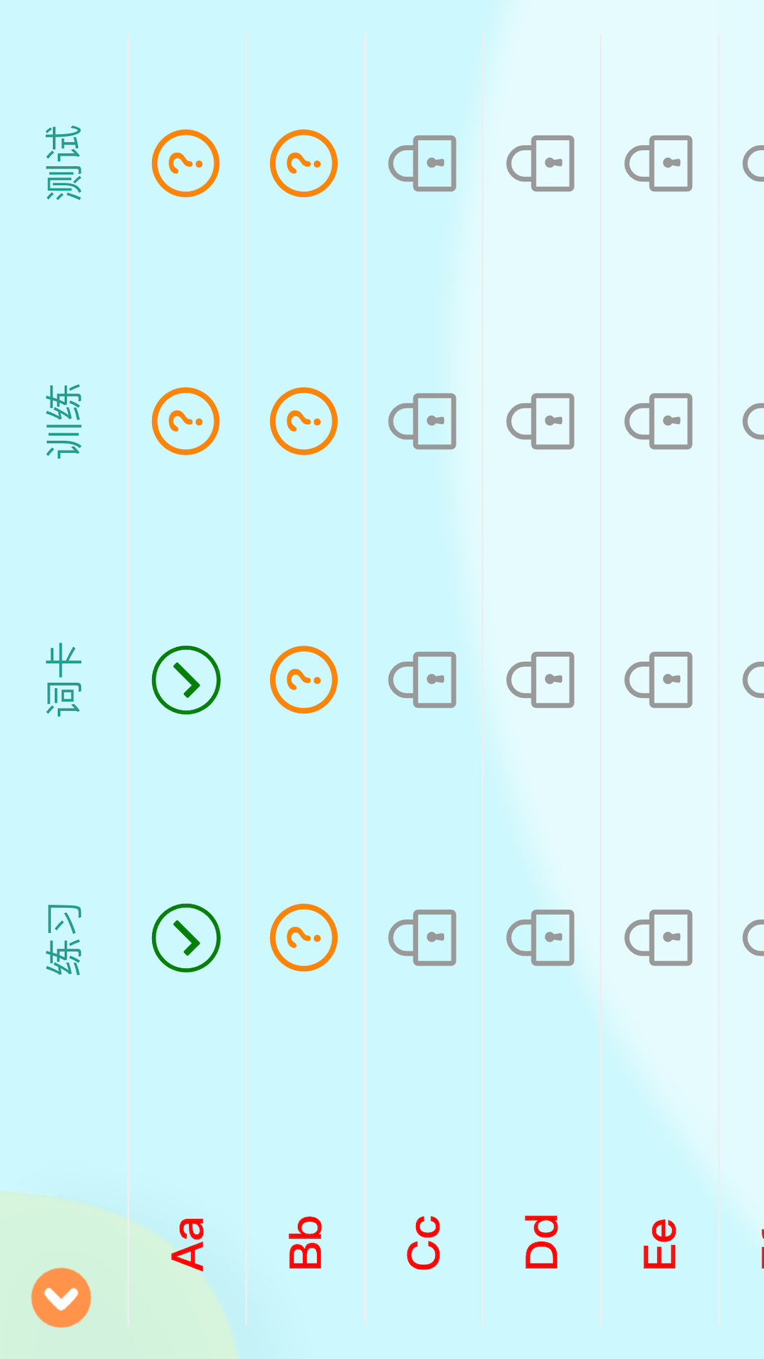 2、每个拼读单词都设计了4个环节:练习、词卡、训练、测试,循序渐进,轻松掌握。