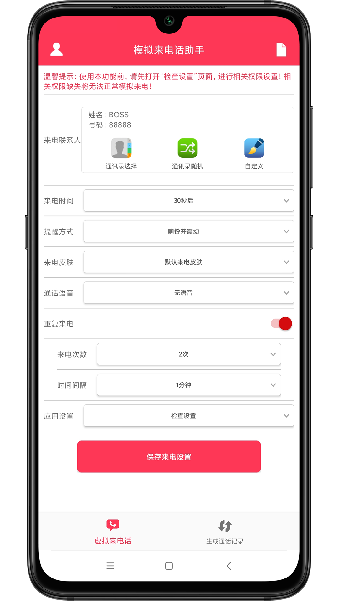首先是虚拟来电话功能。你可以自定义来电的时间以及联系人,而且来电皮肤还能自行设定,从而适应不同品牌的手机,非常方便。