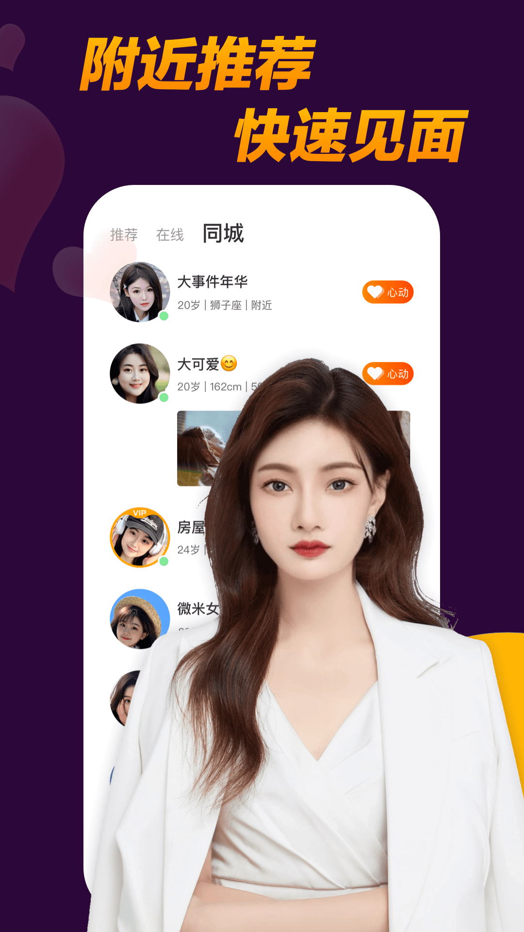 附近泡泡是一款视频聊天交友APP,陌生人泛娱乐交友社区,附近的人同城相亲,高颜值的直播交友。
