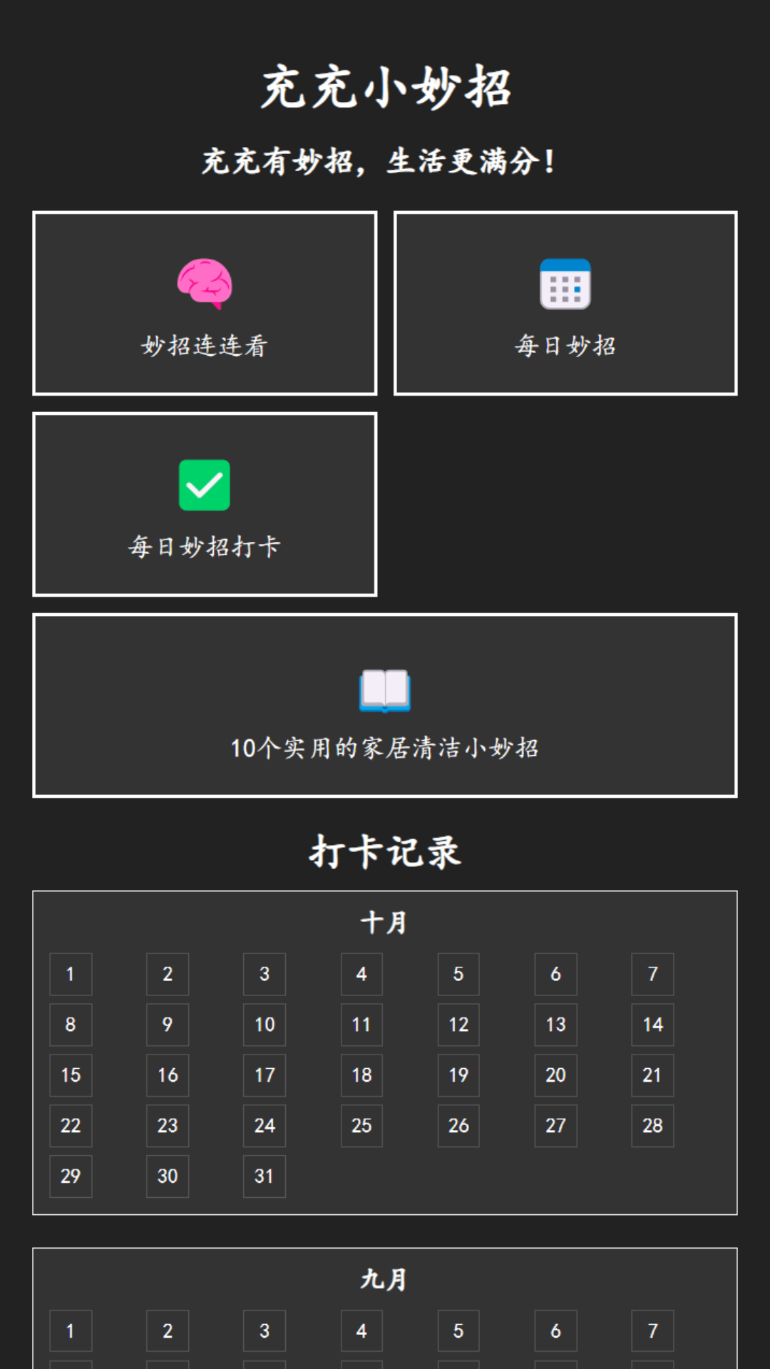 充充小妙招 - 让生活充满智慧小技巧!汇集了各种实用的生活小妙招和小窍门,帮你轻松解决日常难题。“充充“代表不断充实知识,“小妙招“则是各种巧妙的解决方案。通过每日打卡、妙招连连看等功能,让你的生活更加便利有趣!快来下载体验吧~