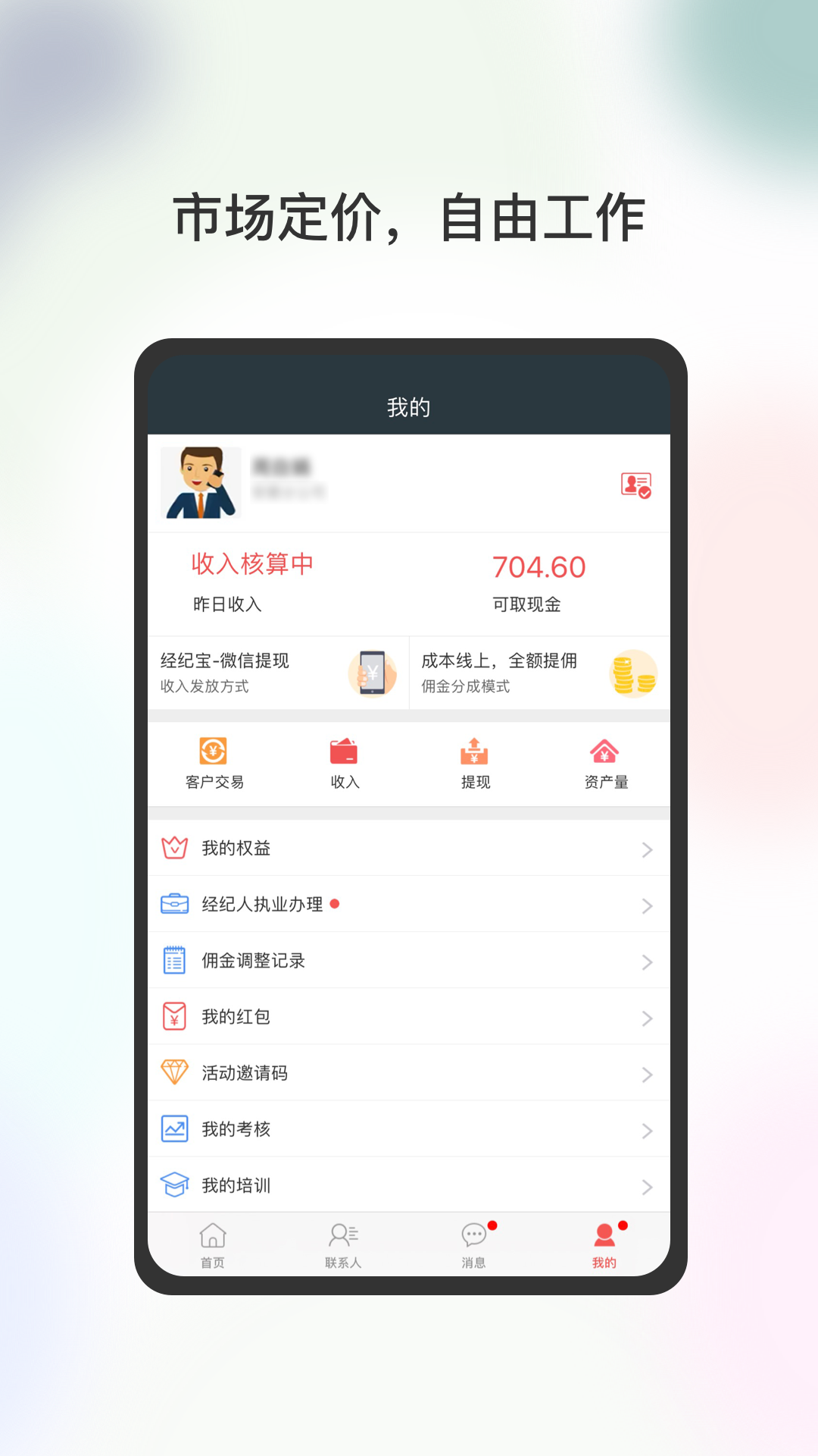 成本线上,考核合格,享受全额提成,为自由经纪而生。