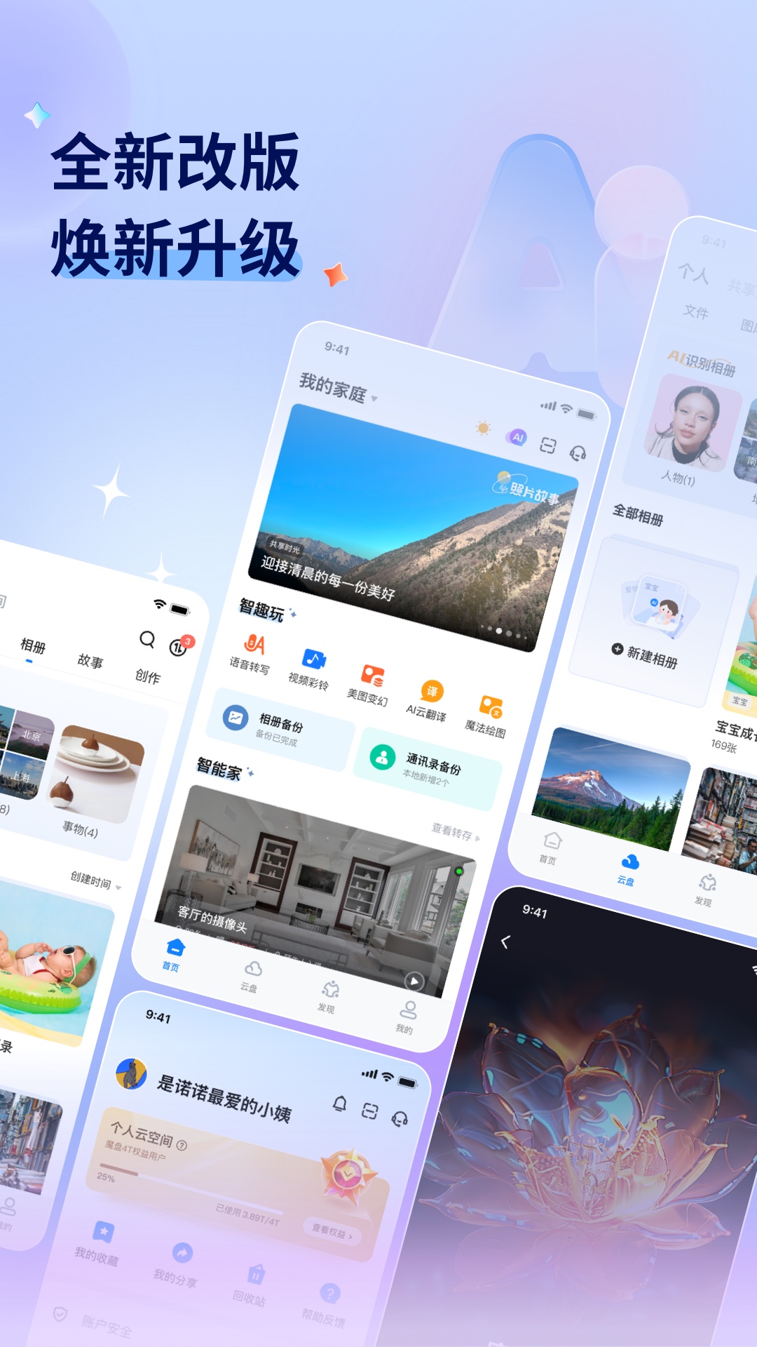AI相册可实现云端照片的智能分类管理,用户可自建爱情、旅行等主题相册,宝宝相册AI自动识别本地照片智能整理。系统会自动生成美食、周末、节假日等故事,选择故事照片和主题模版生成故事视频,美好如约而至。
