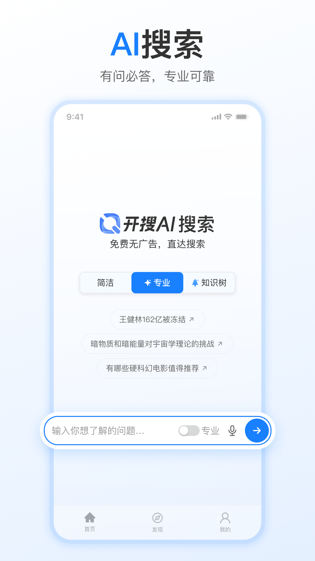 - 免费无广告,针对用户的提问,不但能给出直接、精准的答案,而且答案包含引用源。