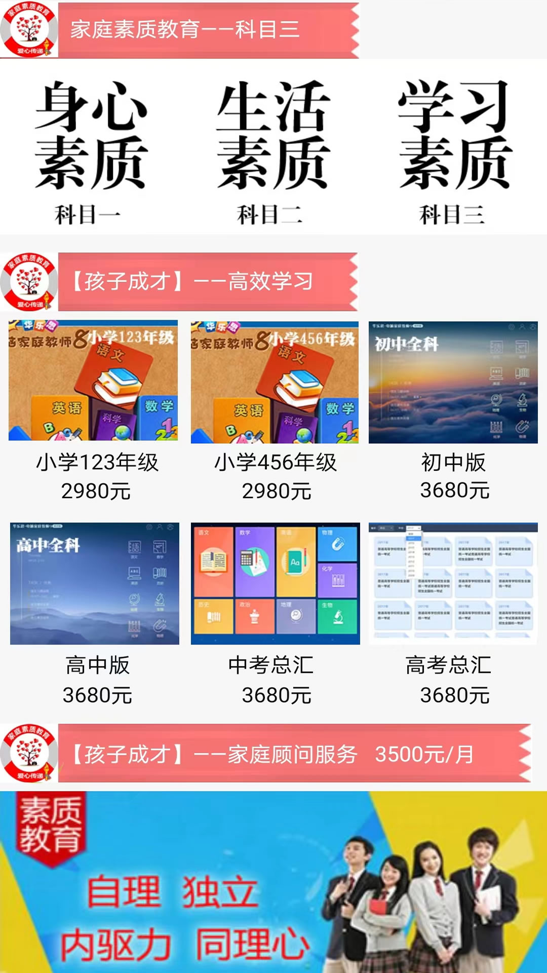参天大树的孩子成才方案涵盖“家庭素质、孩子素质、孩子学习、成长服务”这四大服务体系,此方案能够保障家庭的和谐氛围,确保在培养孩子的过程中,孩子不仅身心健康,而且素质更为出众、学习成绩优异。
