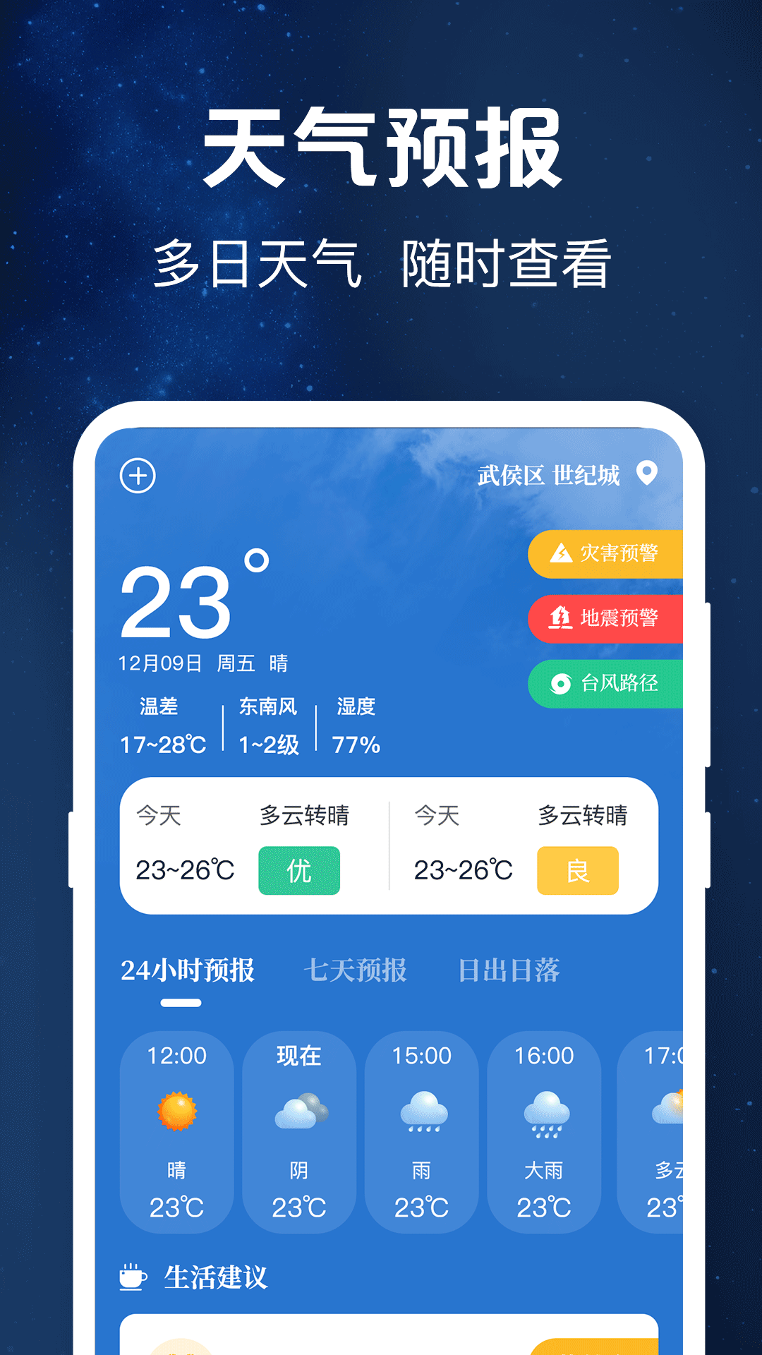 天气预报功能也非常实用。它能够准确地预报天气的变化情况,为您的出行及时提供参考依据,让您出门在外更加安心。