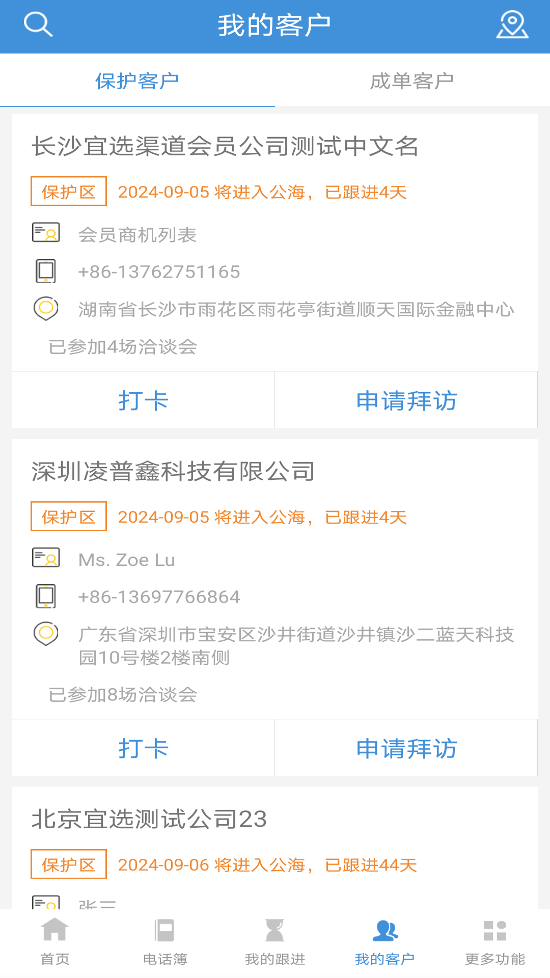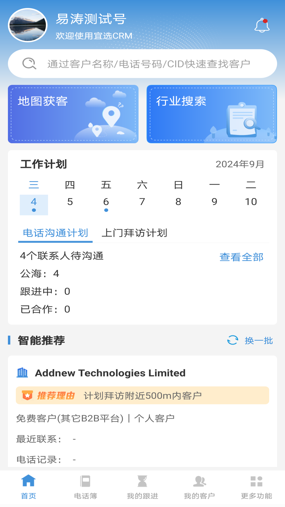 2、附近的客户:查找自己所在位置附近的高意向和公海客户,并可进行导航与添加高意向操作。