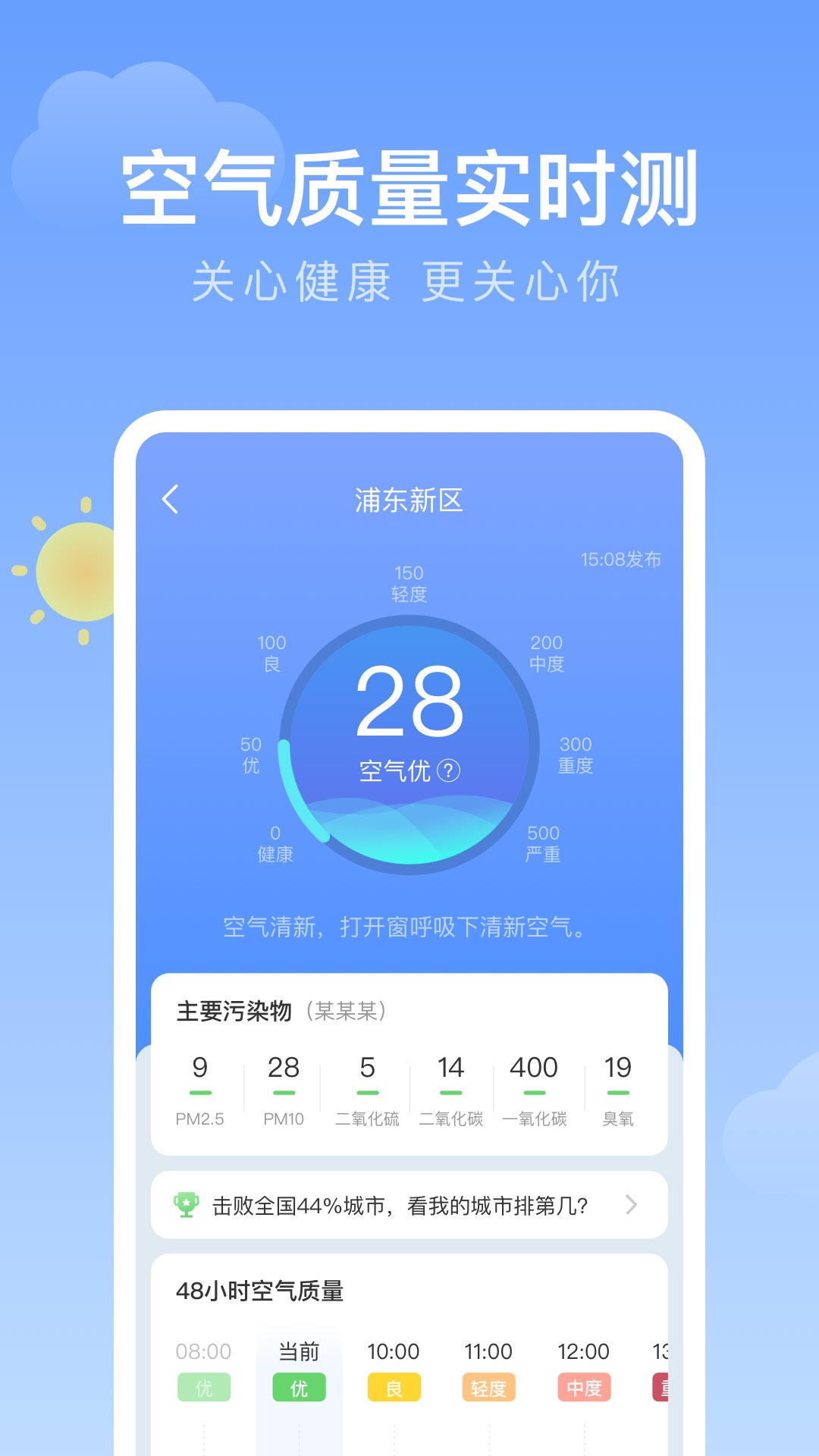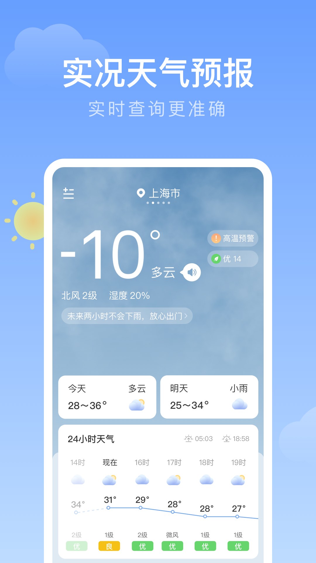 3. 24小时天气预报:24小时逐时预报天气情况,上下班好帮手,家人再也不用担心我淋雨了。
