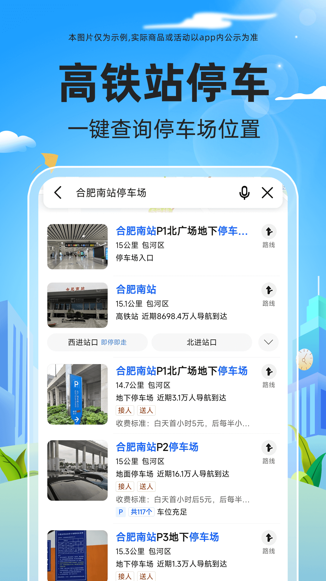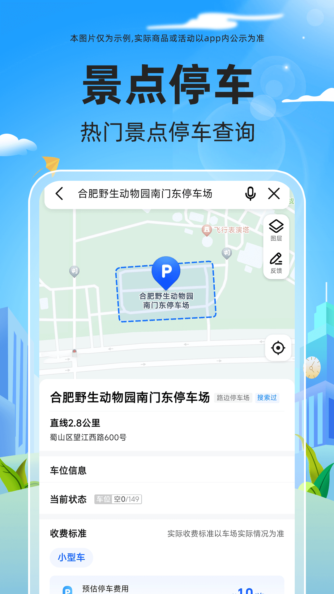 *多种位置信息检索,应用支持选择自身定位位置、车站位置、医院、机场、景点等多个场景附近的停车场位置信息,为您提前安排出行。
