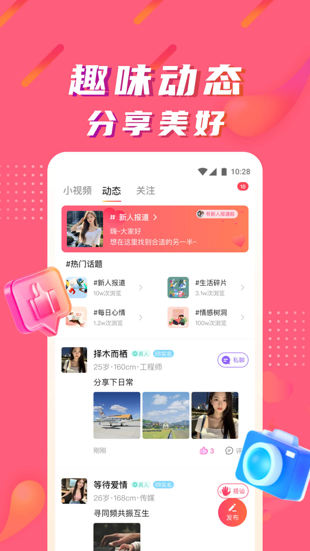 你是否在现实生活里不太善于表达自己呢?如果是这样的话,那就快来陌微陌恋吧。在这里,你可以勇敢地向心动的Ta送去问候,开启一段美好的互动。