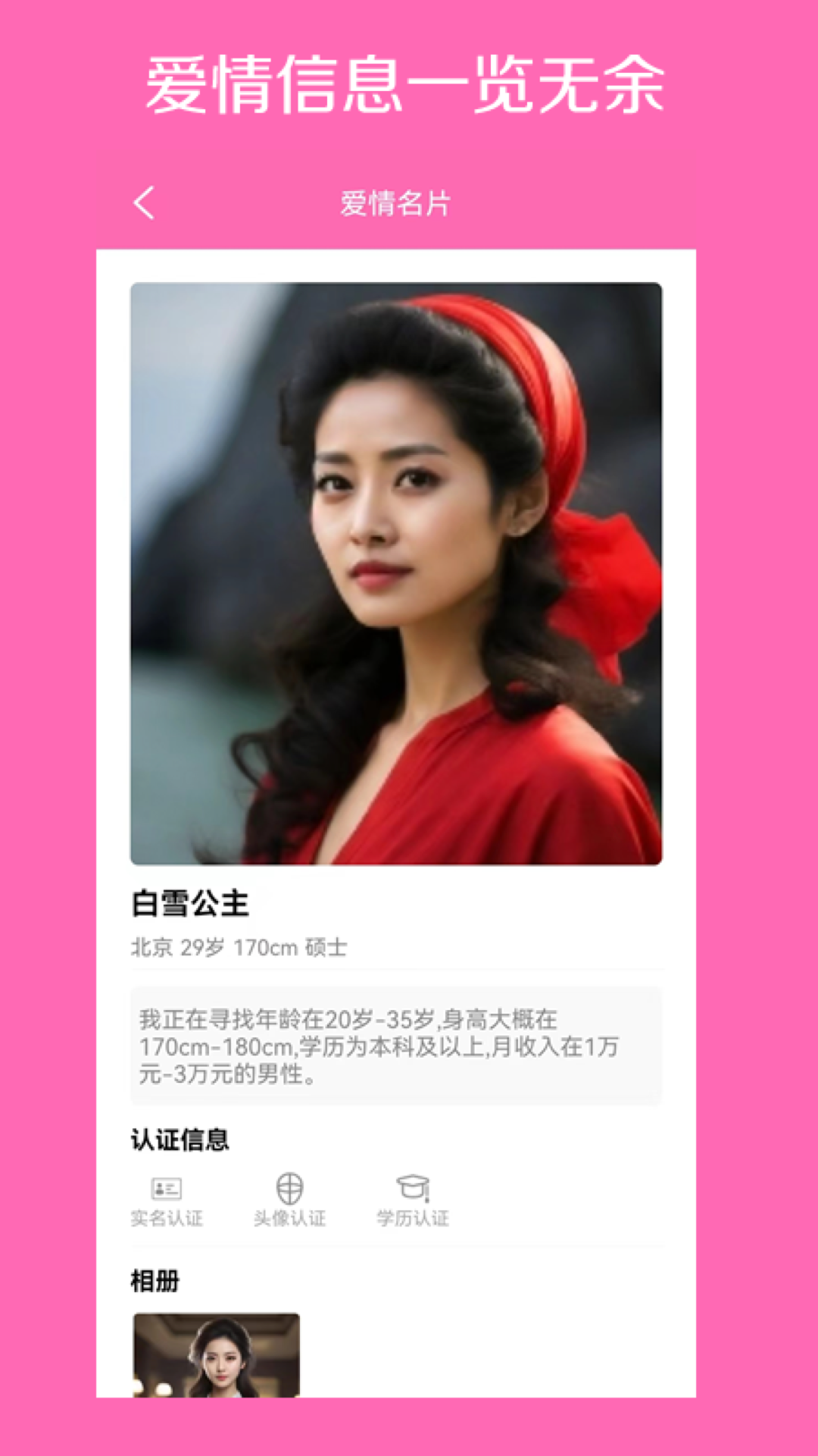 爱情呼叫是一个基于熟人模式的爱情社交沟通工具,通过熟人转发爱情名片,更快速全面了解爱情信息。免费让人人都享有爱情的权利,实名让人人的爱情更安全。
