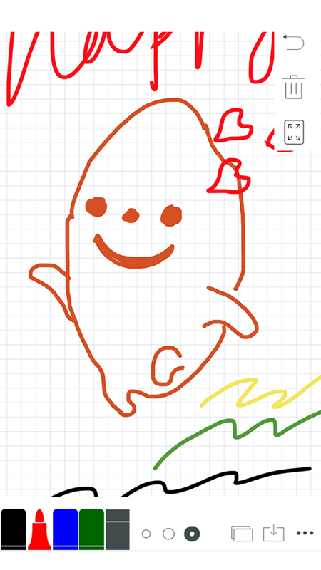 4. 界面始终保持简洁风格,只显示常用的四种颜色以及三种常用笔触大小。不过在新版本里,画笔可以选择更多的颜色,底色也能选择更多颜色,笔触大小除了原有的几种,还能进一步自定义更多大小呢。