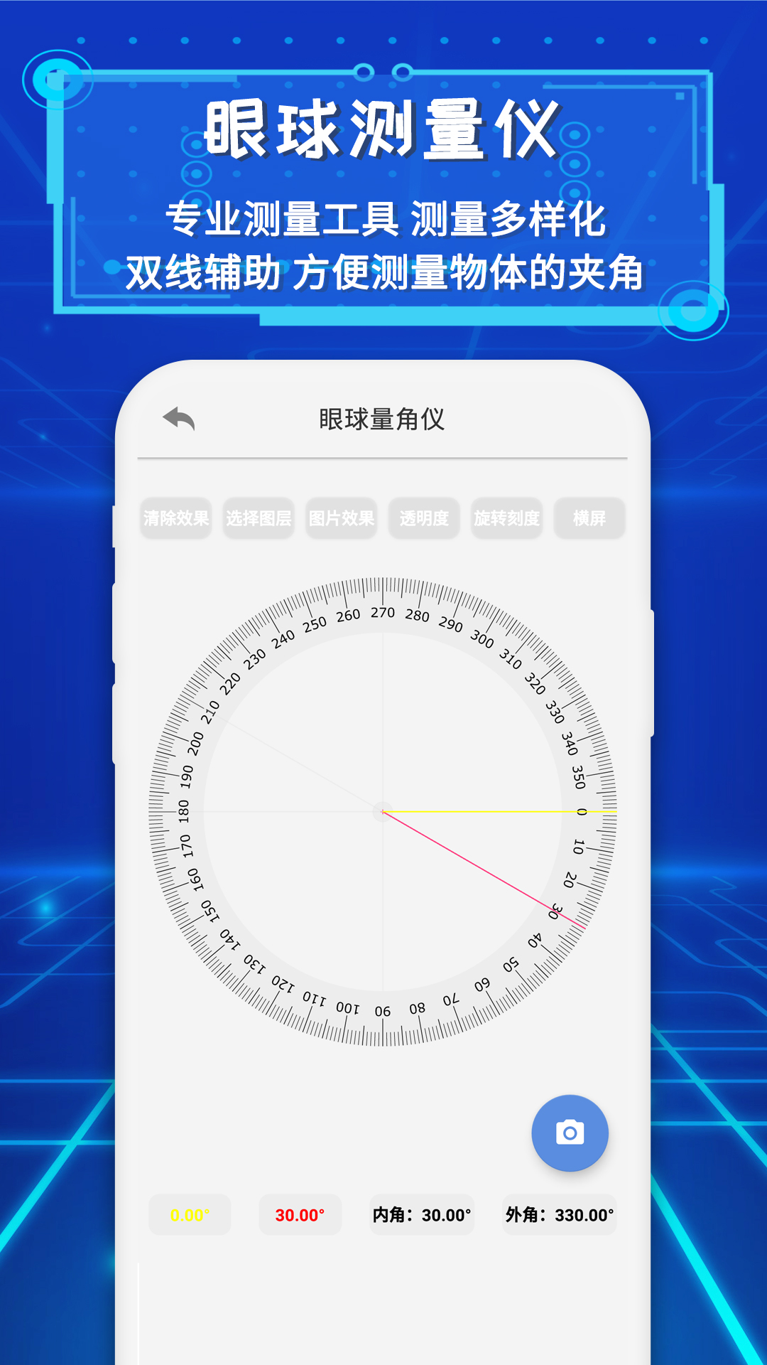 - 仿真手机量角尺:以3D平面图测量方式,直观地测量度数值。