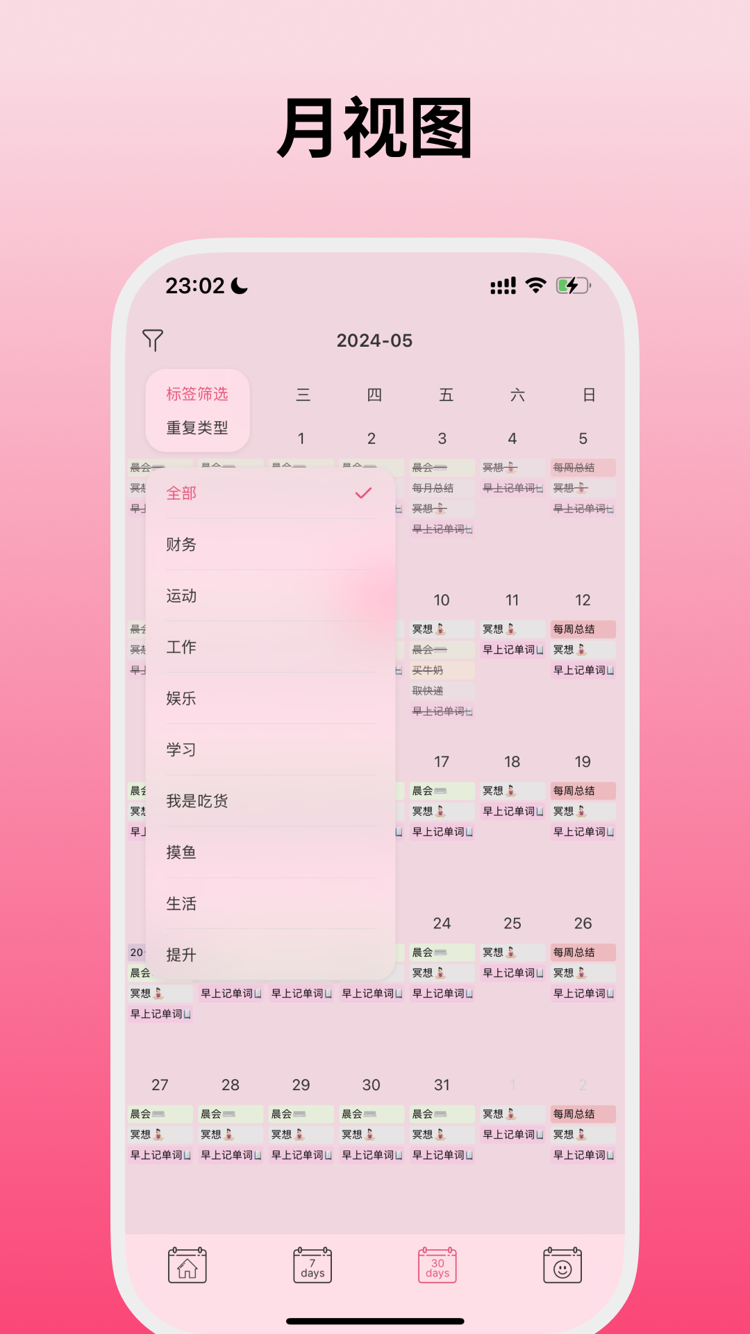 在《纯纯周记》中,您可以轻松创建任务、设置重复任务和选择标签。我们致力于让您更好地掌握日程安排,从而提高工作效率和生活质量。通过直观的周视图和月视图,您可以清晰了解任务的状态和进展,让计划更加有序、执行更加高效。